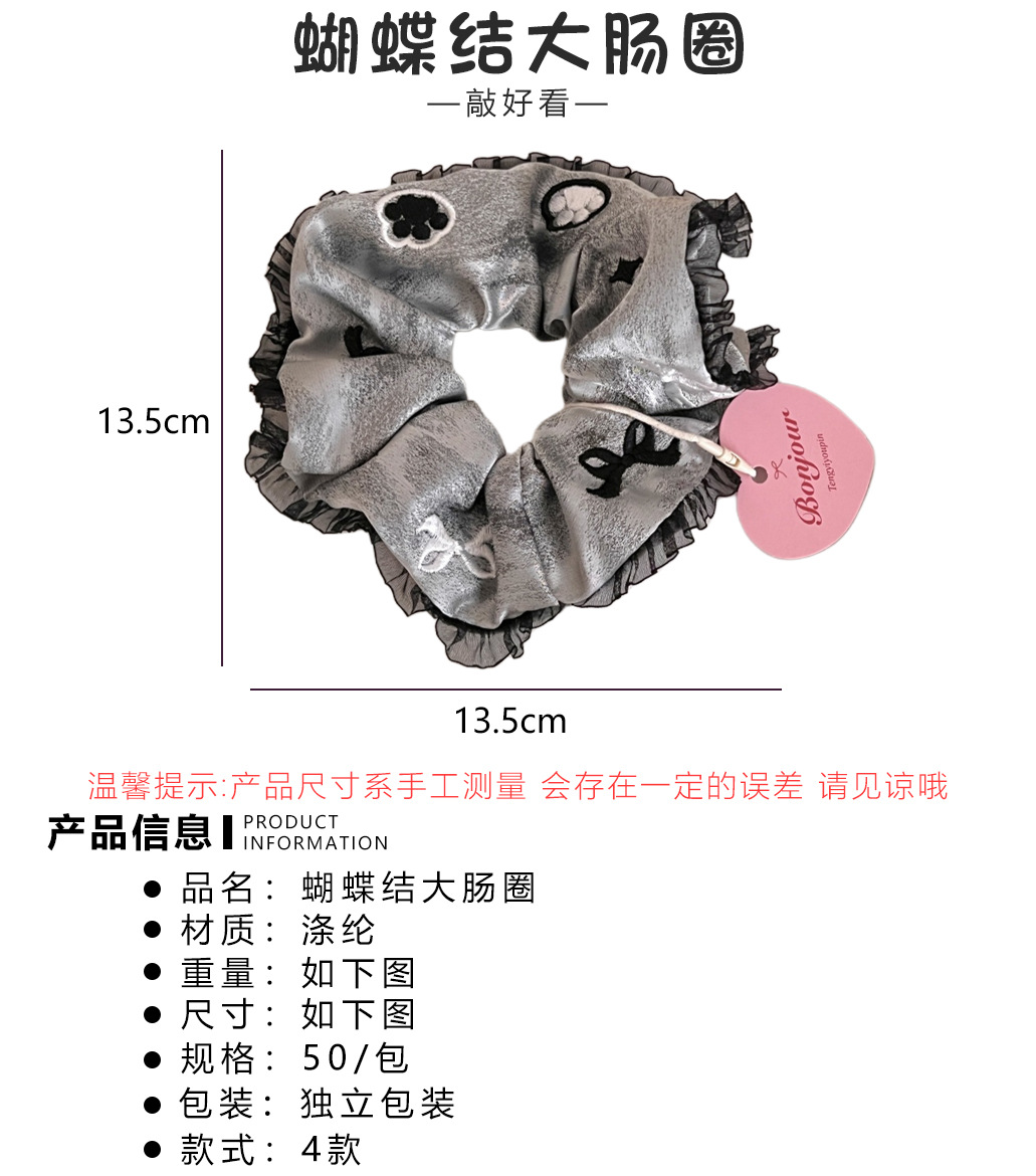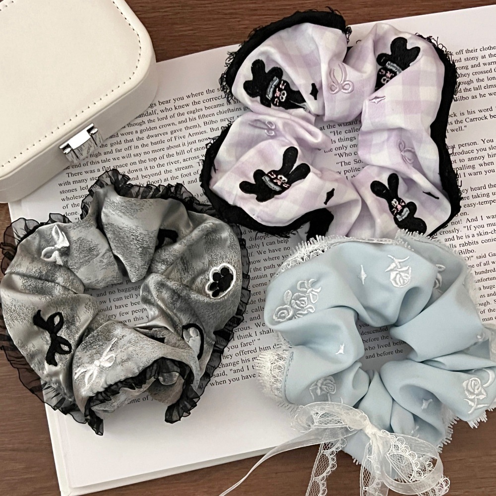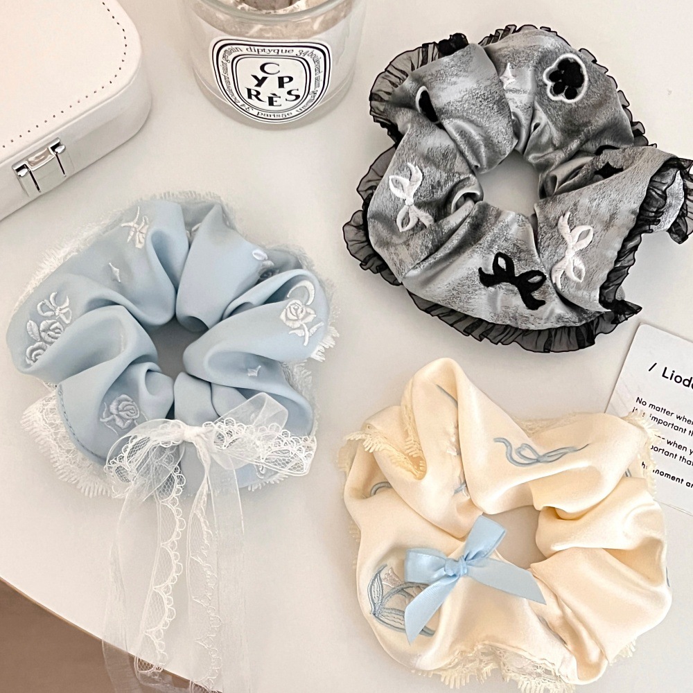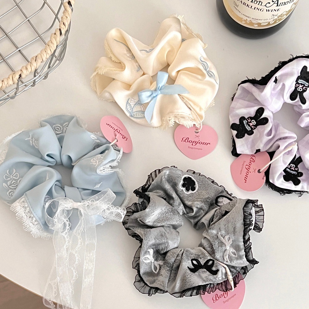 Frase bordada arco dulce anillo de cabello intestino de alta sensibilidad de la niña encaje cuerda de cabello suave adornos para el cabello