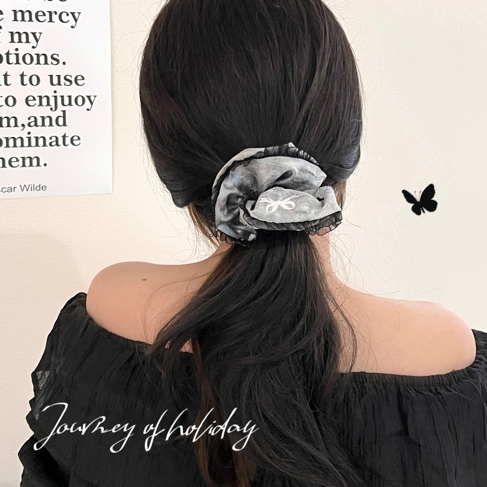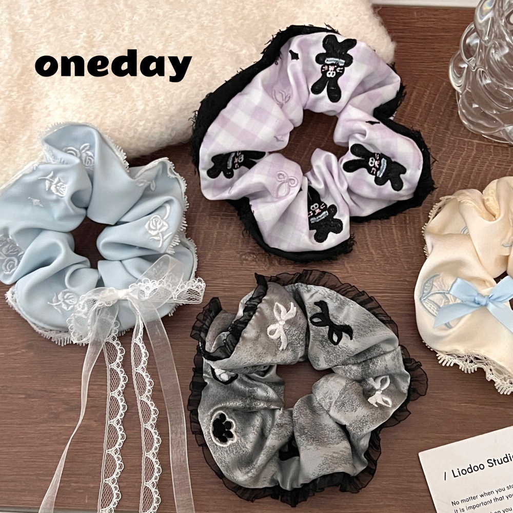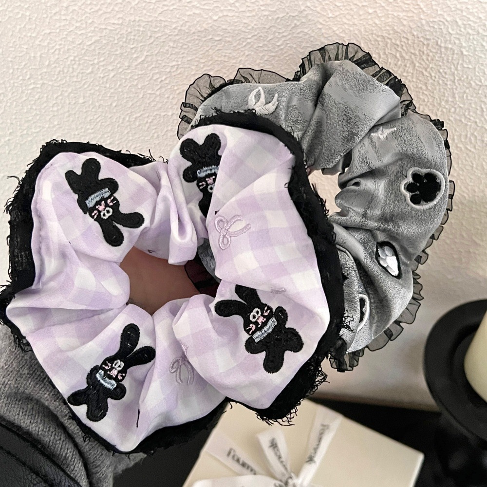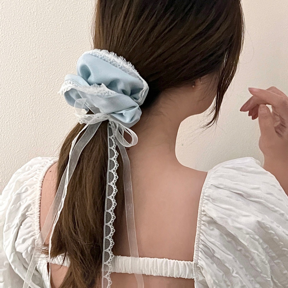 Frase bordada arco dulce anillo de cabello intestino de alta sensibilidad de la niña encaje cuerda de cabello suave adornos para el cabello