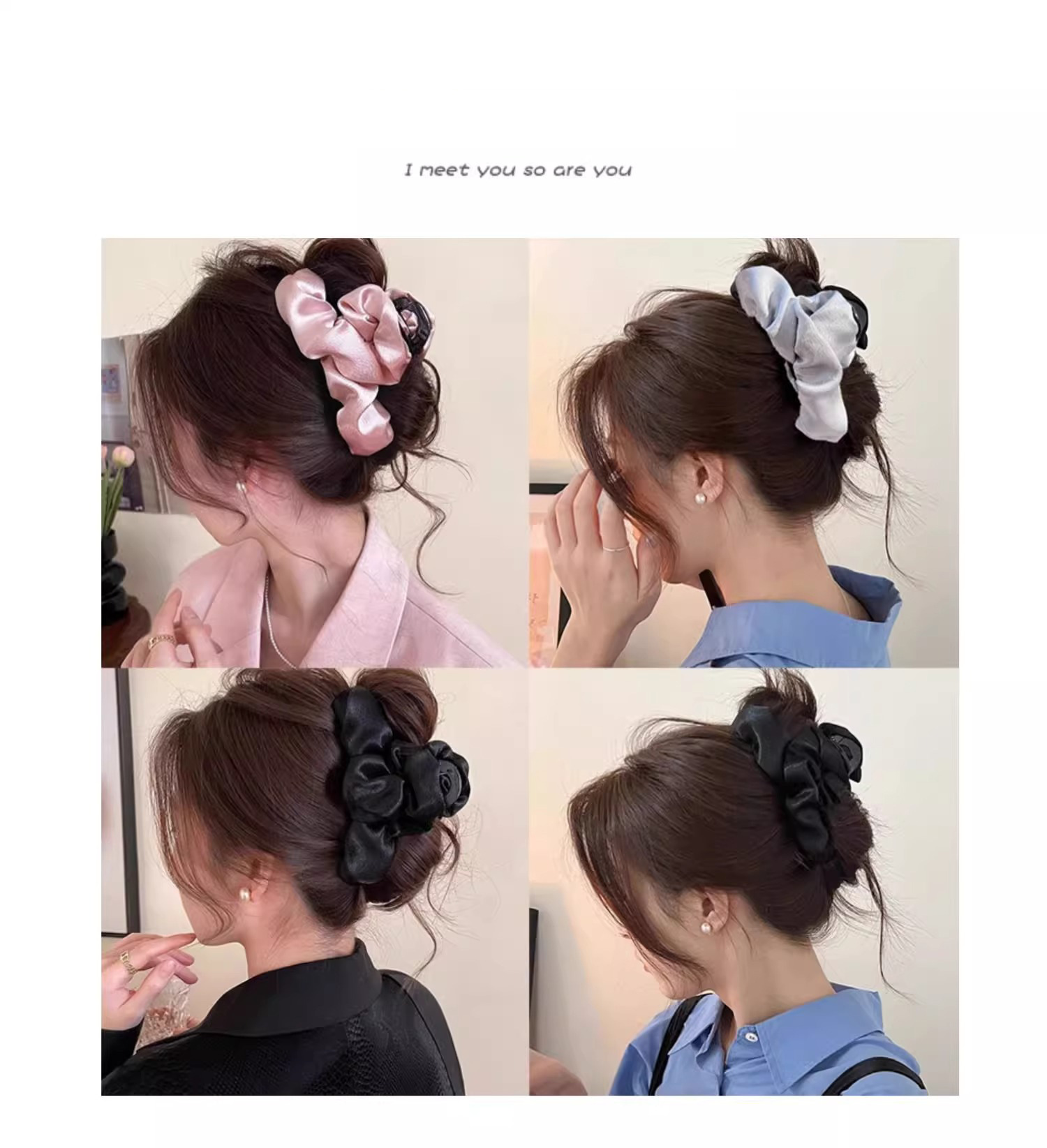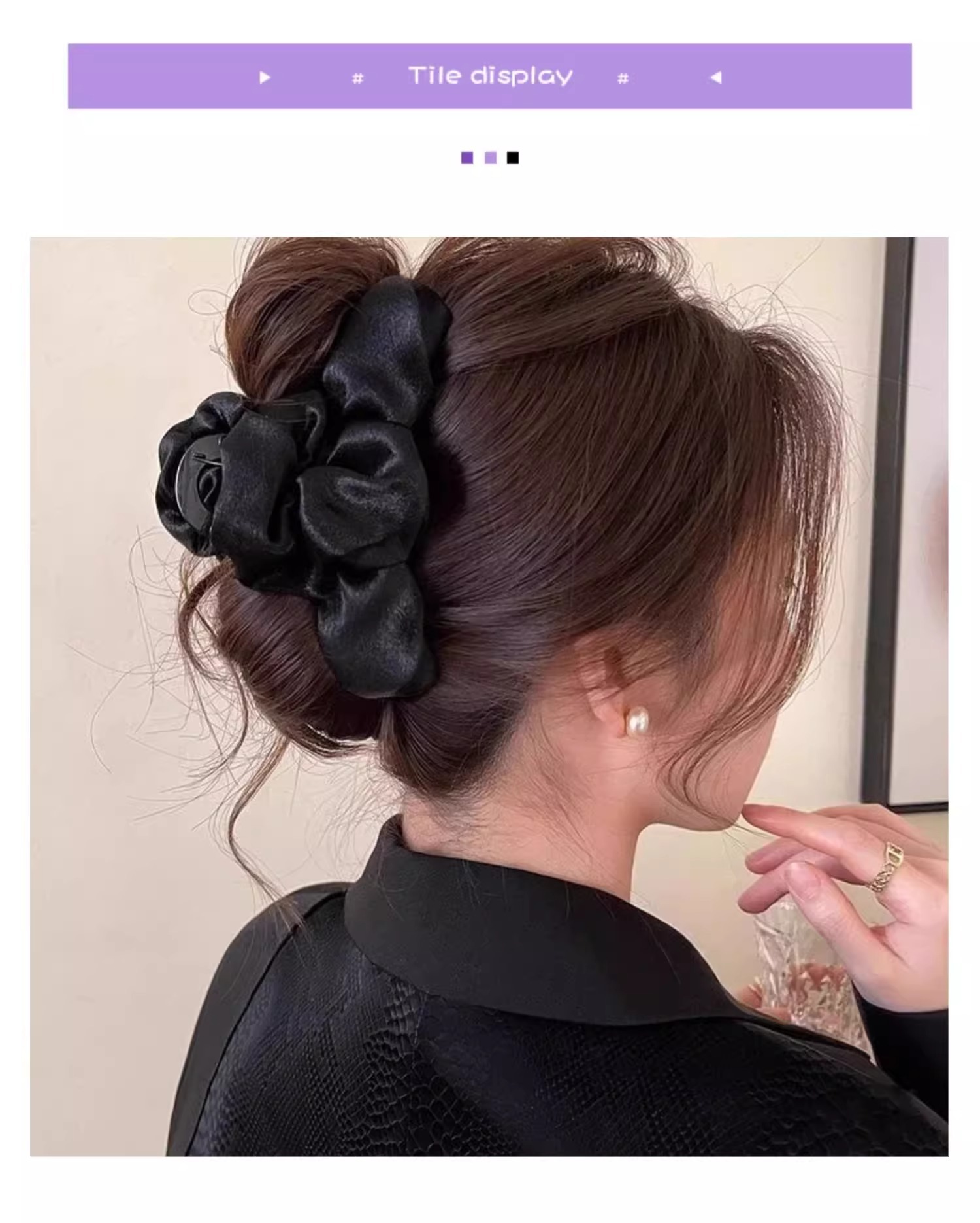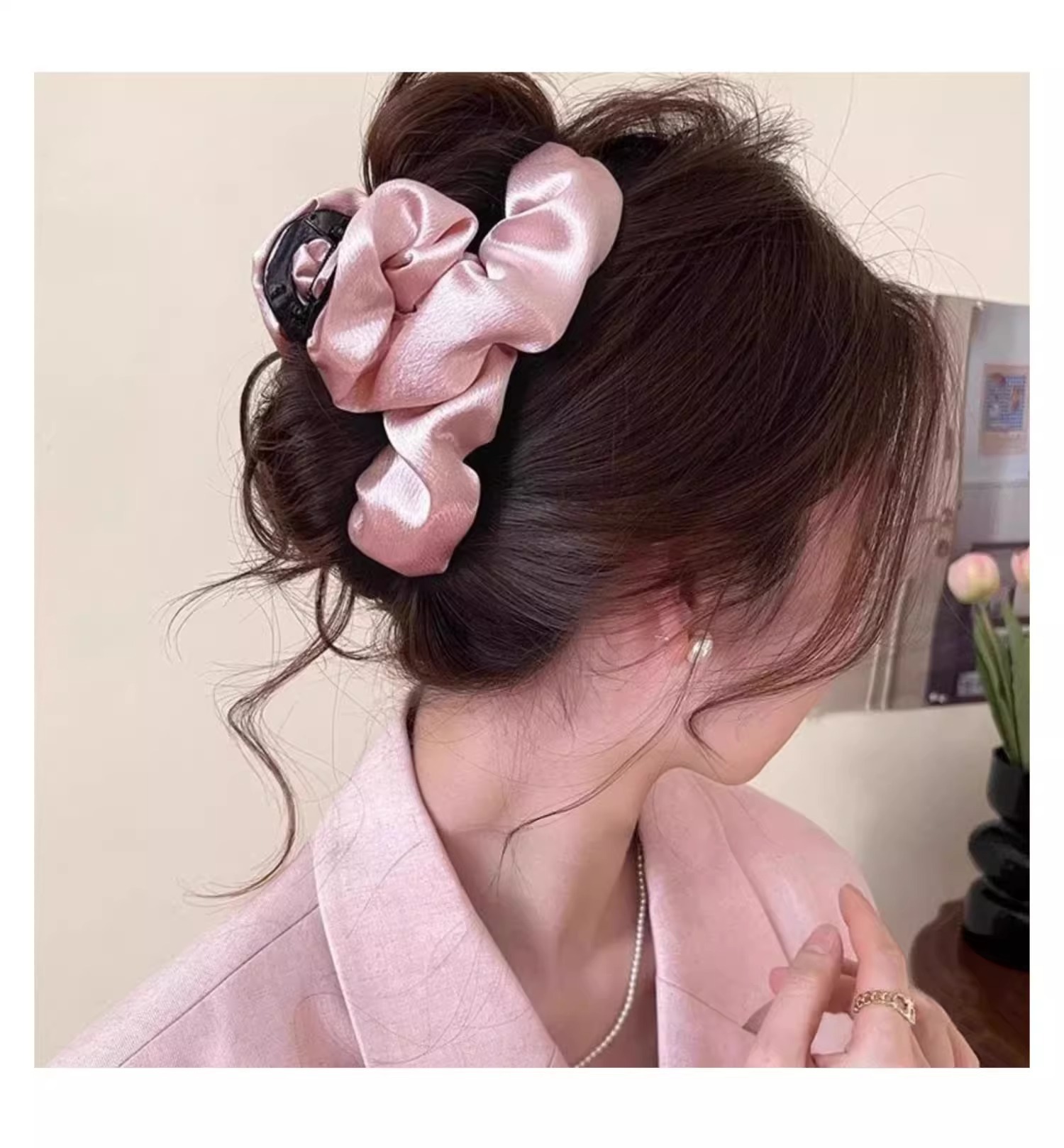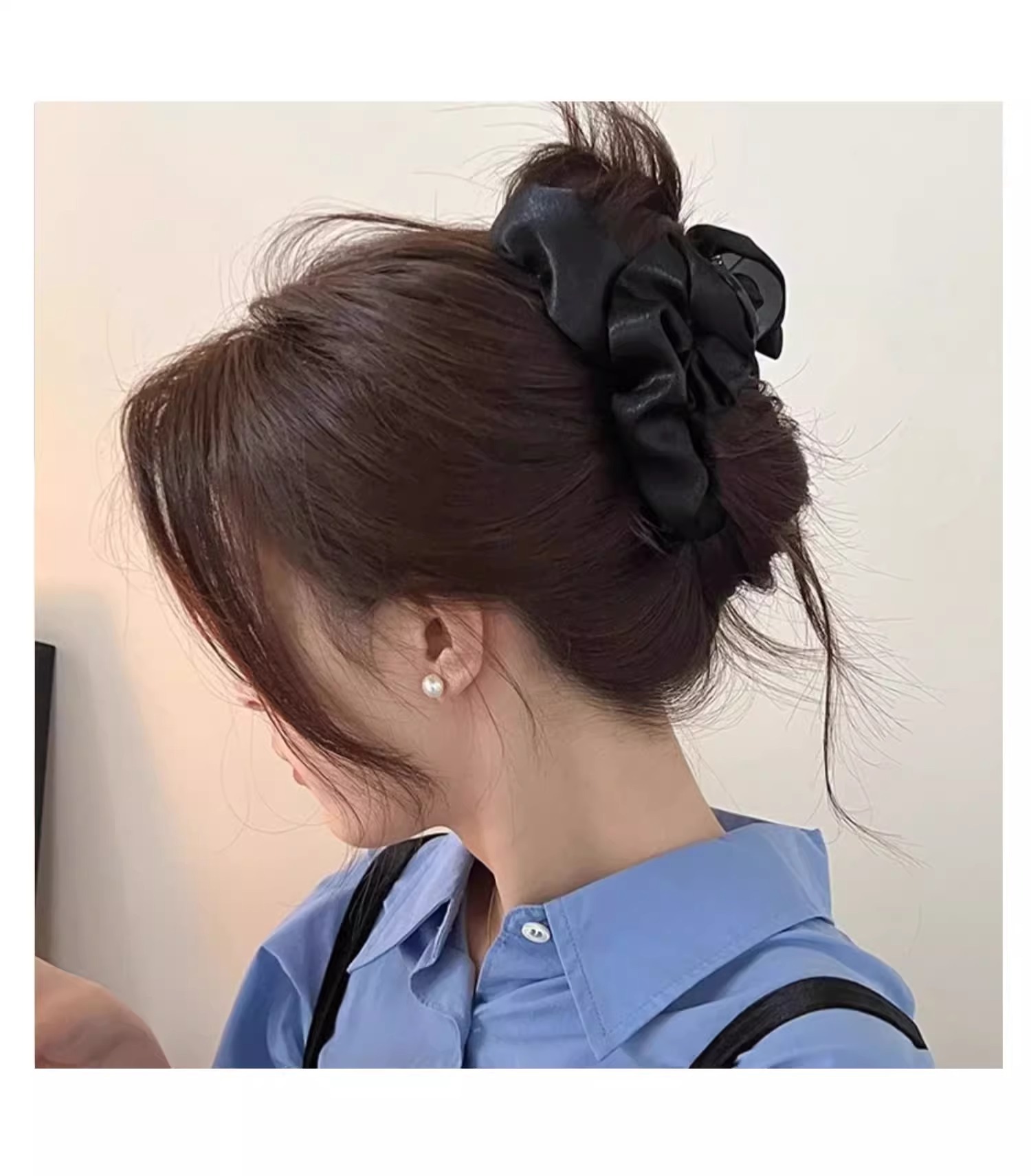 Satín de alta sensación gran clip de agarre de mujeres plegado detrás de la cabeza clip de tiburón 2025 nuevo clip de cabello al por mayor