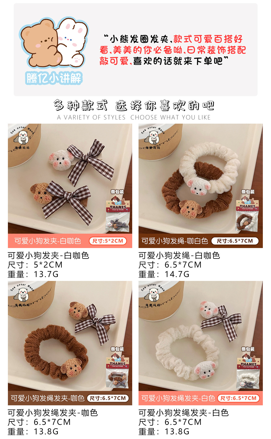 Nuevo lindo cachorro de cabello de cabello de cabello de cola de caballo de niña anillo de cabello dulce frisa clip clip clip de cabello al por mayor