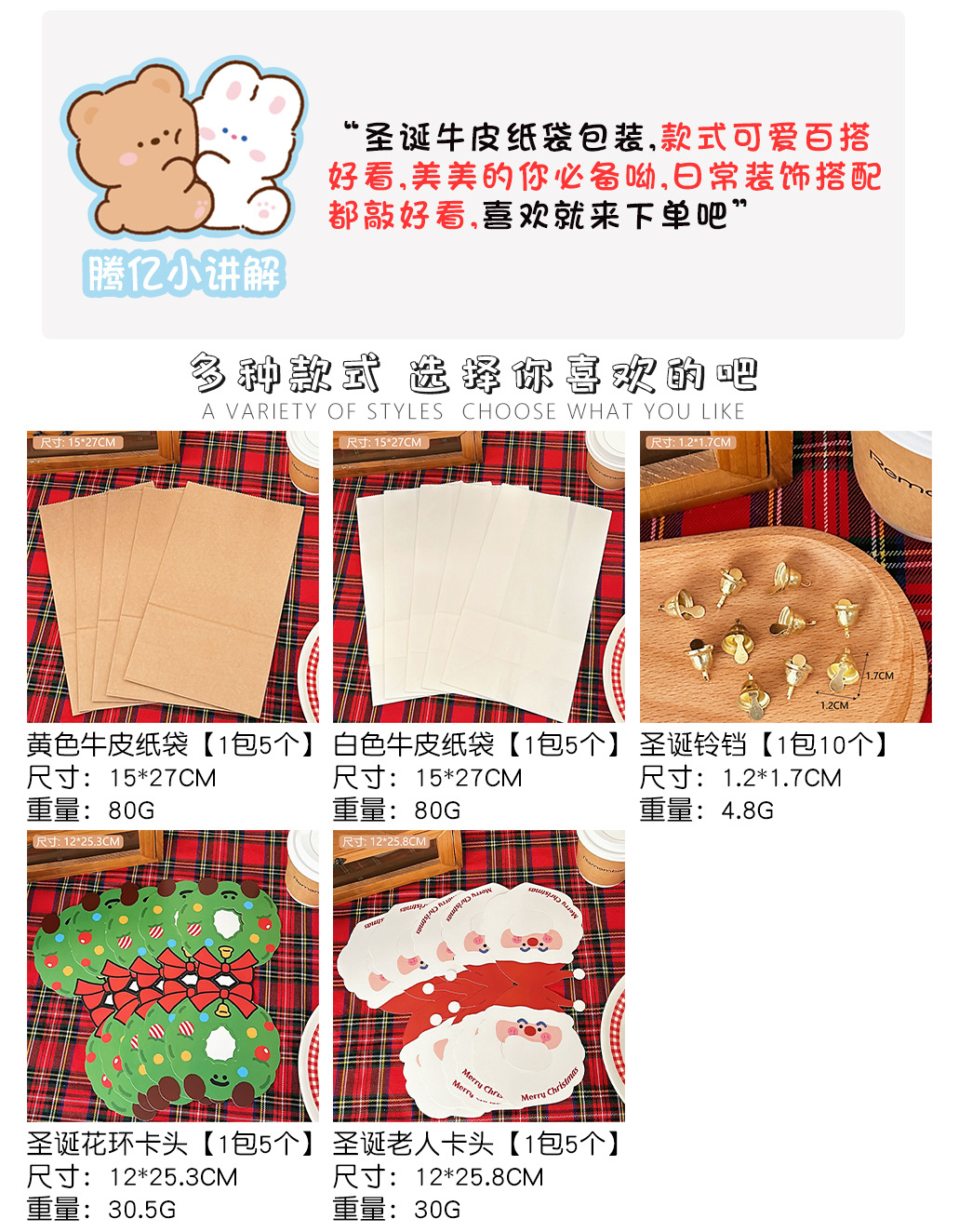 Tengyi original kraft bolsa de decoración cartón de regalo de Navidad accesorios de embalaje de chicas corazón de Navidad accesorios versátiles