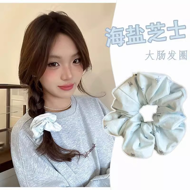 Azul de sal marina crema ~ mecha de cabello de cabello de cabello de arco de cabello de niña de colón de barriga de cabello de gran tamaño adornos de pelo