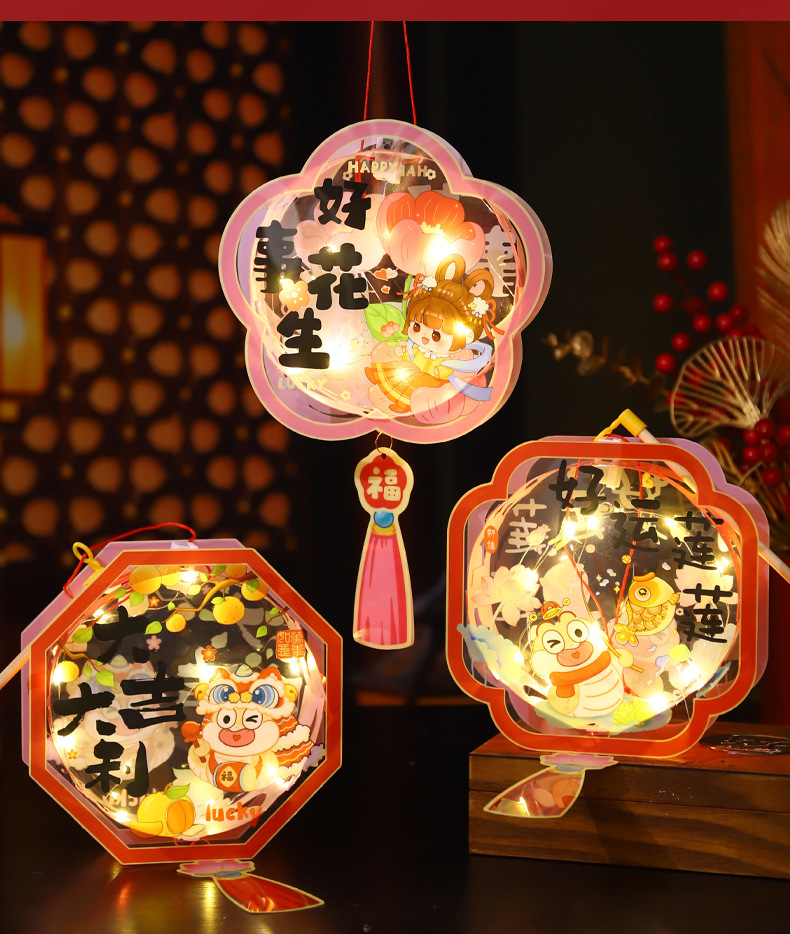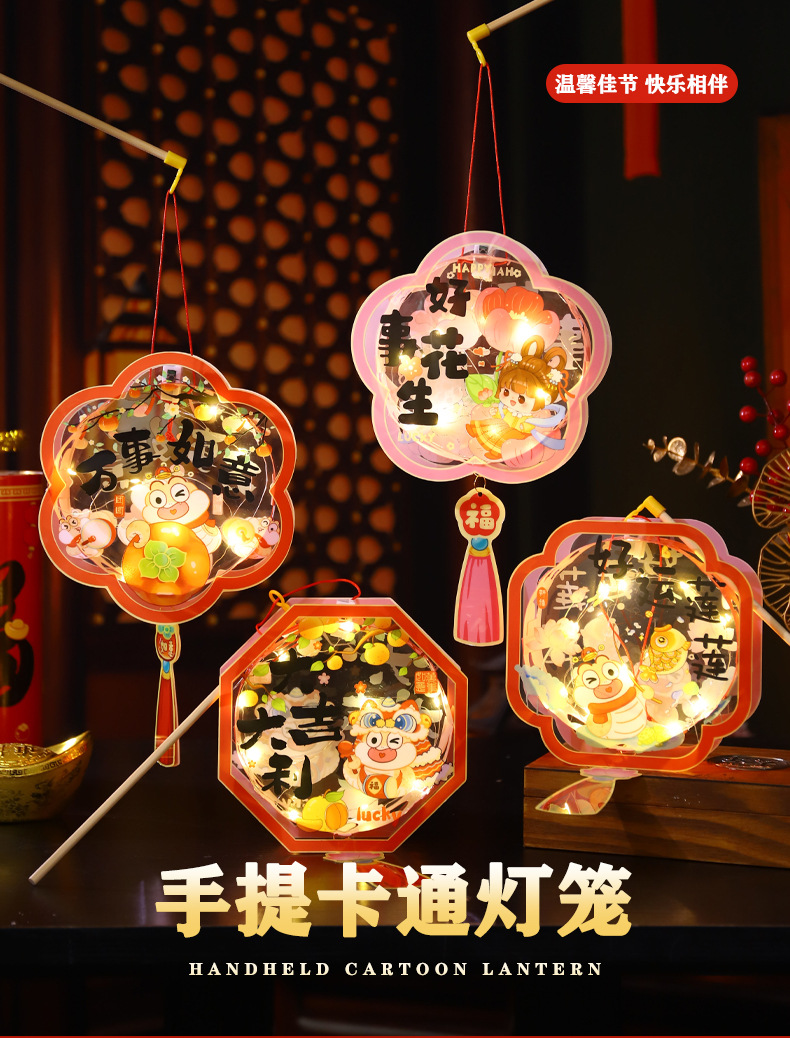 2025 serpiente año nuevo día de año nuevo linterna linterna de año nuevo linterna niños hechos a mano DIY material paquete linterna al por mayor