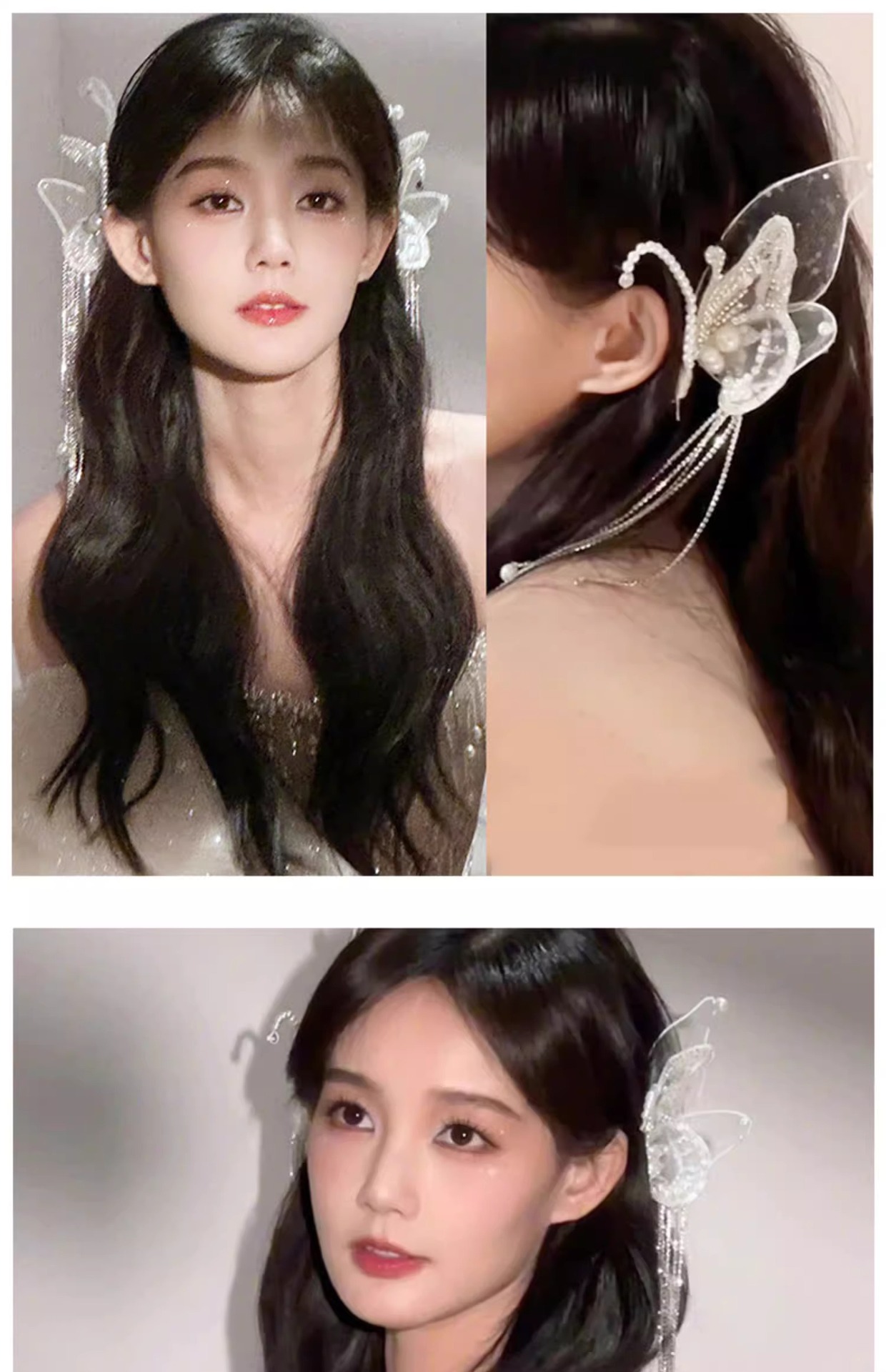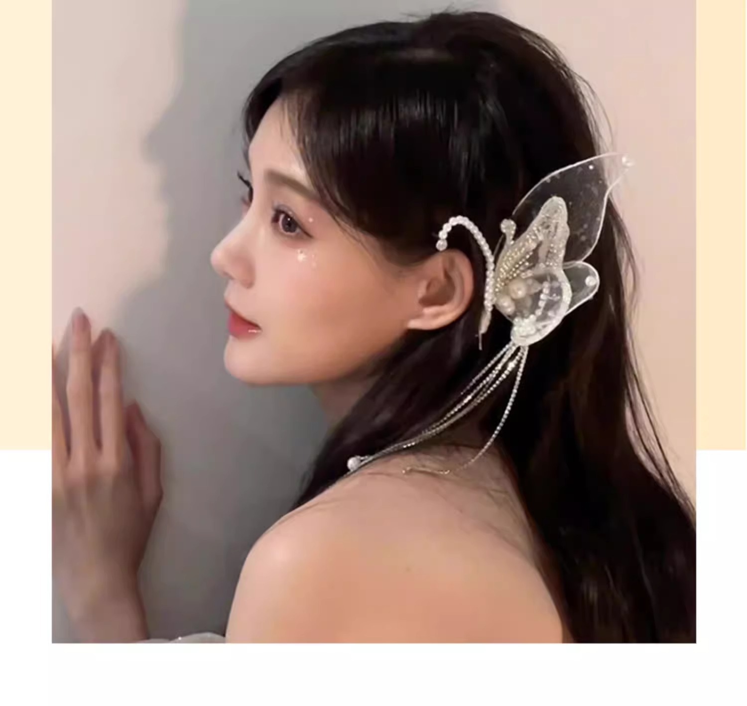 Elf de los niños mariposa alas perlas frisones clips para el cabello de la niña super inmortal lateral frisa clips para el cabello de boca de pato toque