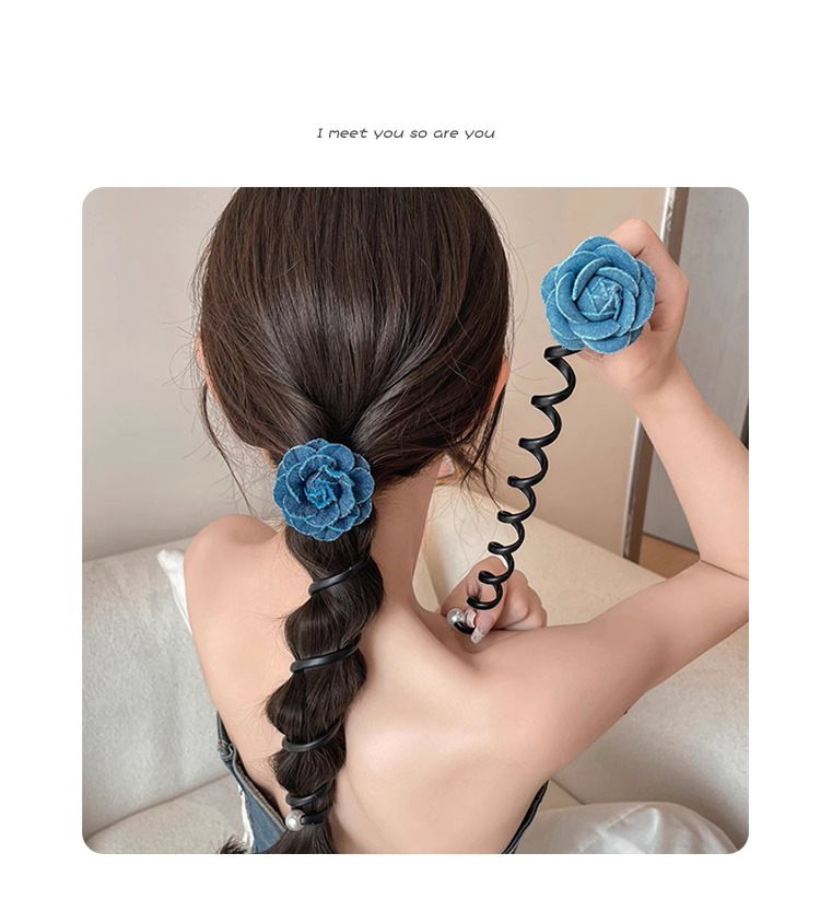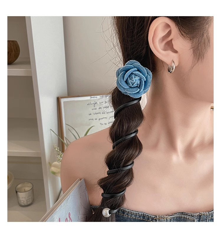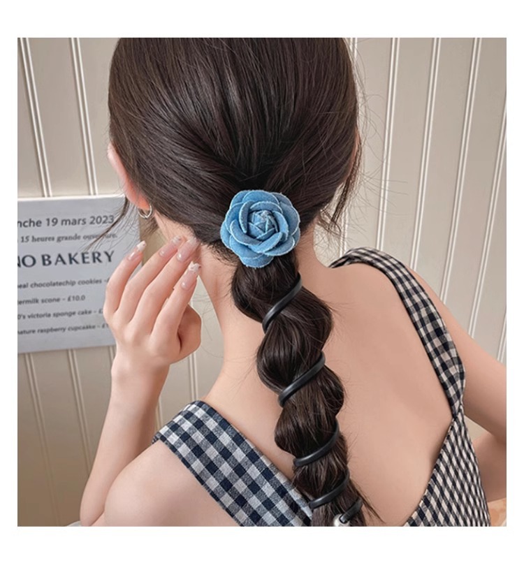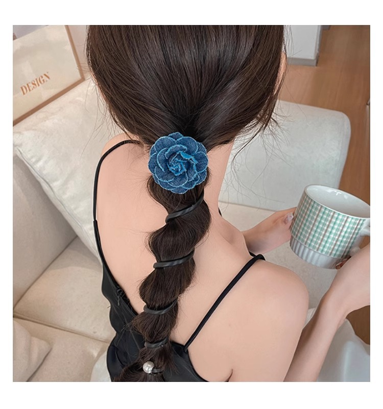 Temperamento de verano vaquero azul flor línea telefónica bucle de cabello de alta calidad 2025 nuevo cabello de burbuja trenza atado artefacto de cabello