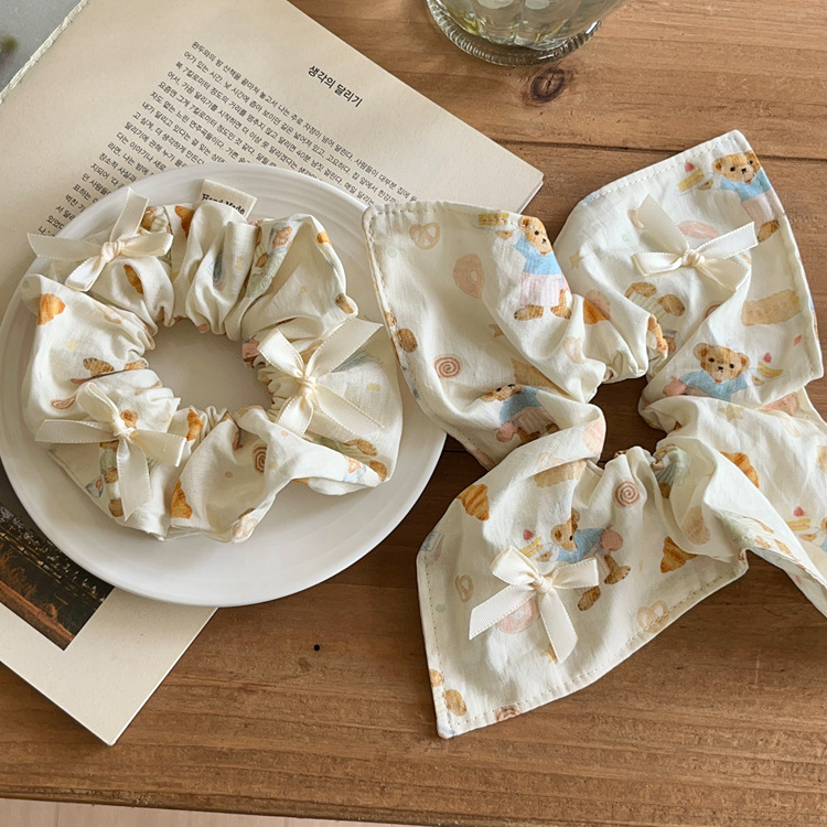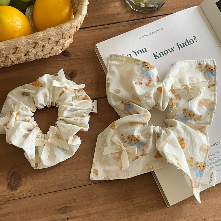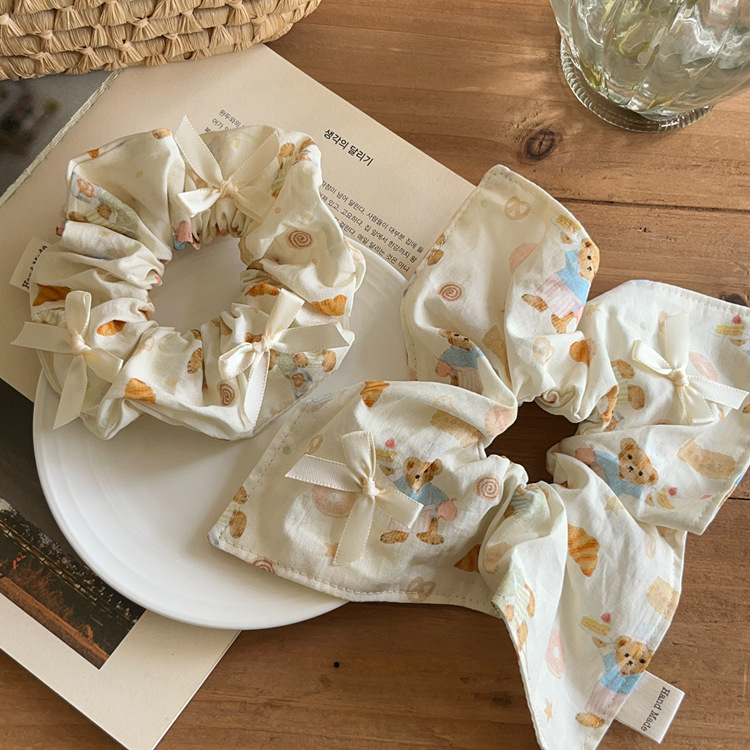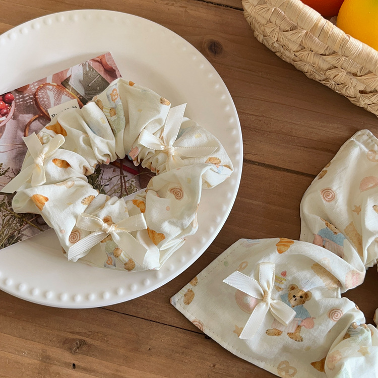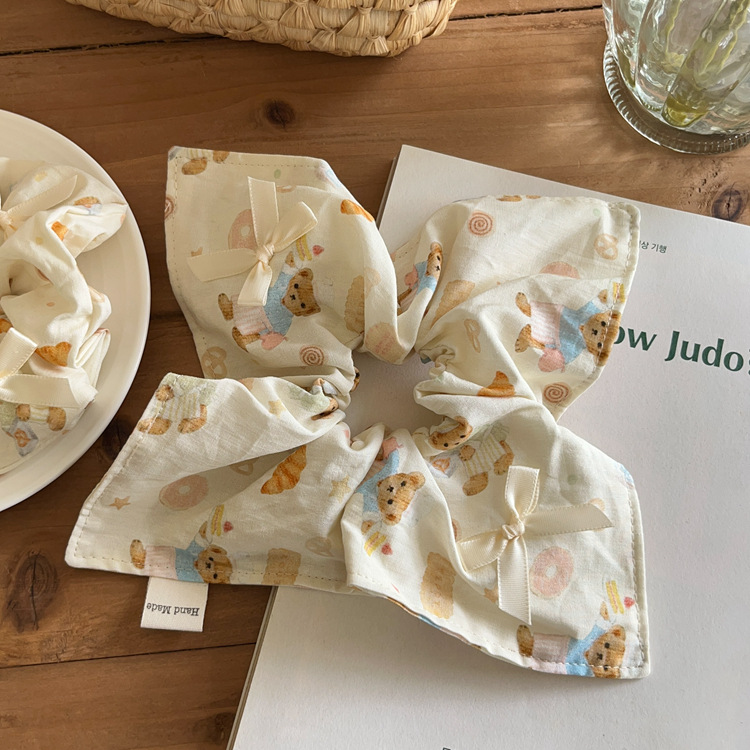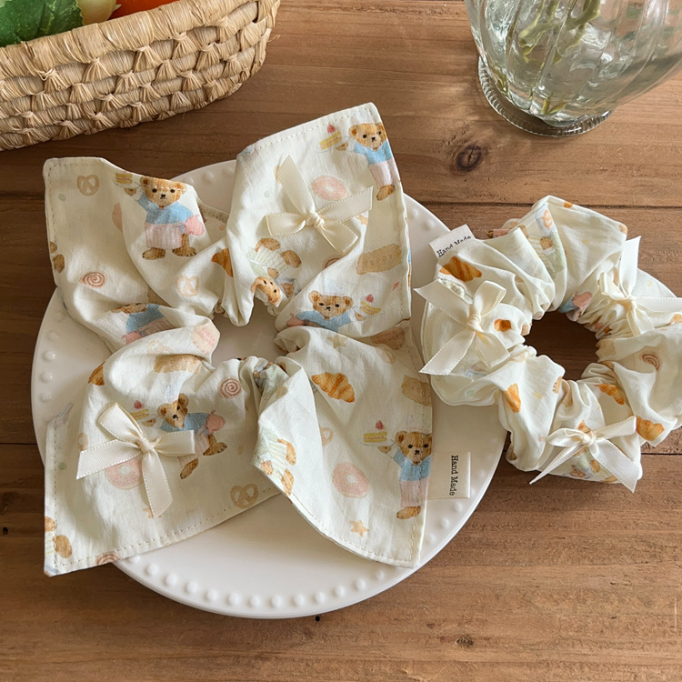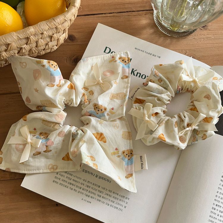 Crema niña oso lazo arte de tela intestino grueso cuerda para el cabello bufanda cuadrada cuerda para la cabeza cola de caballo banda de goma accesorios para el cabello tocado nuevo