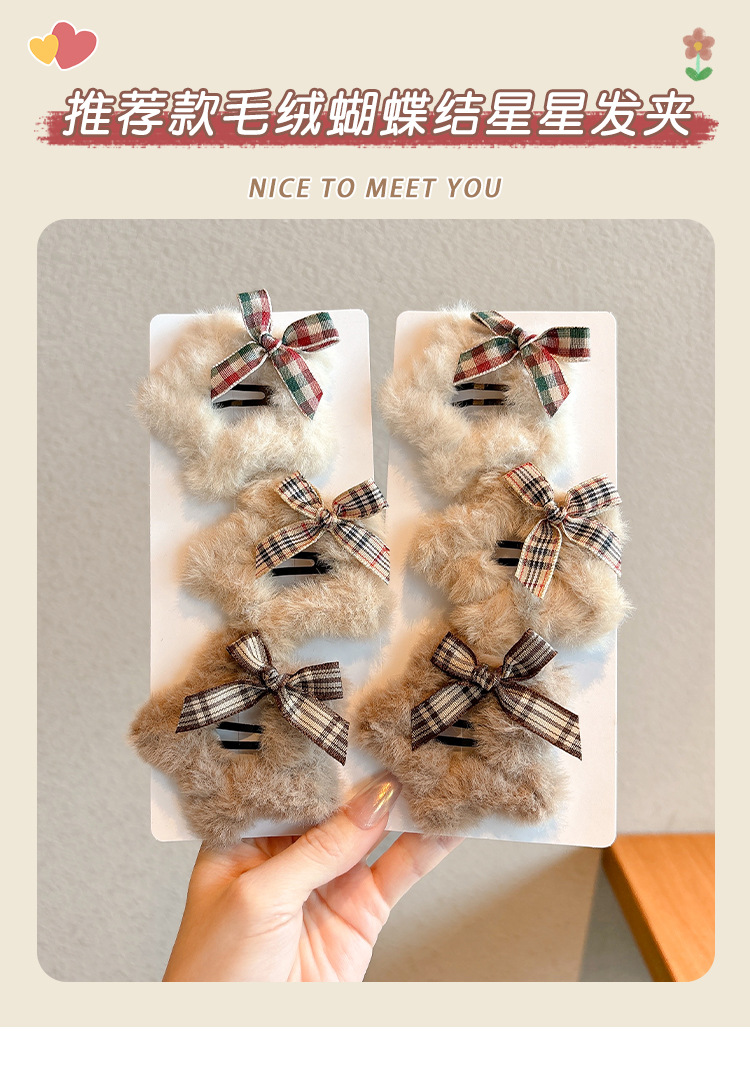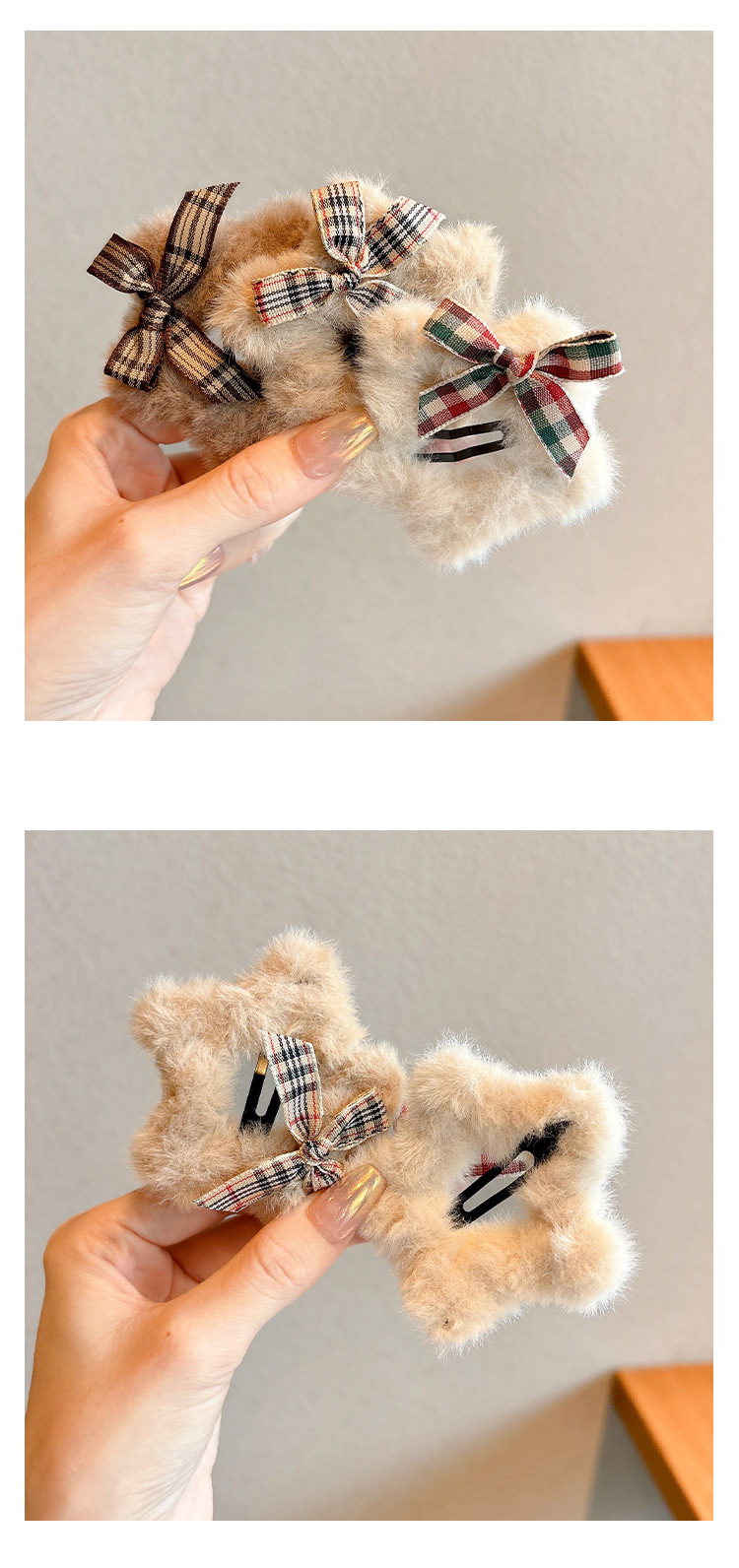 | Color | 1 clip de pelo de estrella de peluche negro con lazo, 2 clip de pelo de estrella de peluche de café profundo con lazo, 3 clip de pelo de estrella de peluche de café claro con lazo, 4 clip de pelo de estrella de peluche beige con lazo |