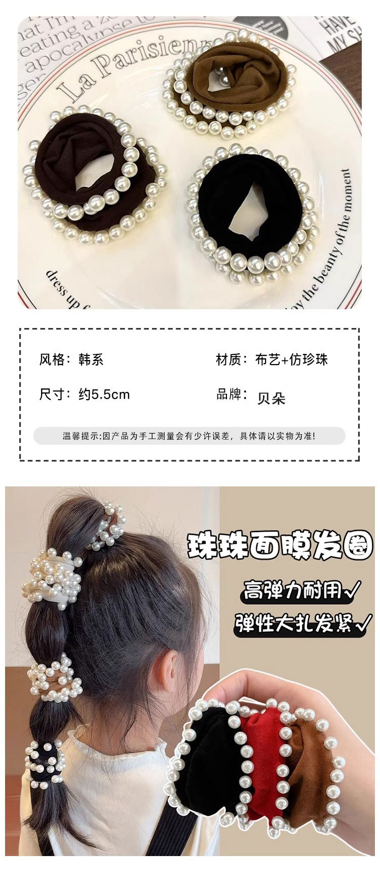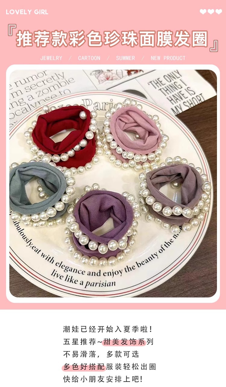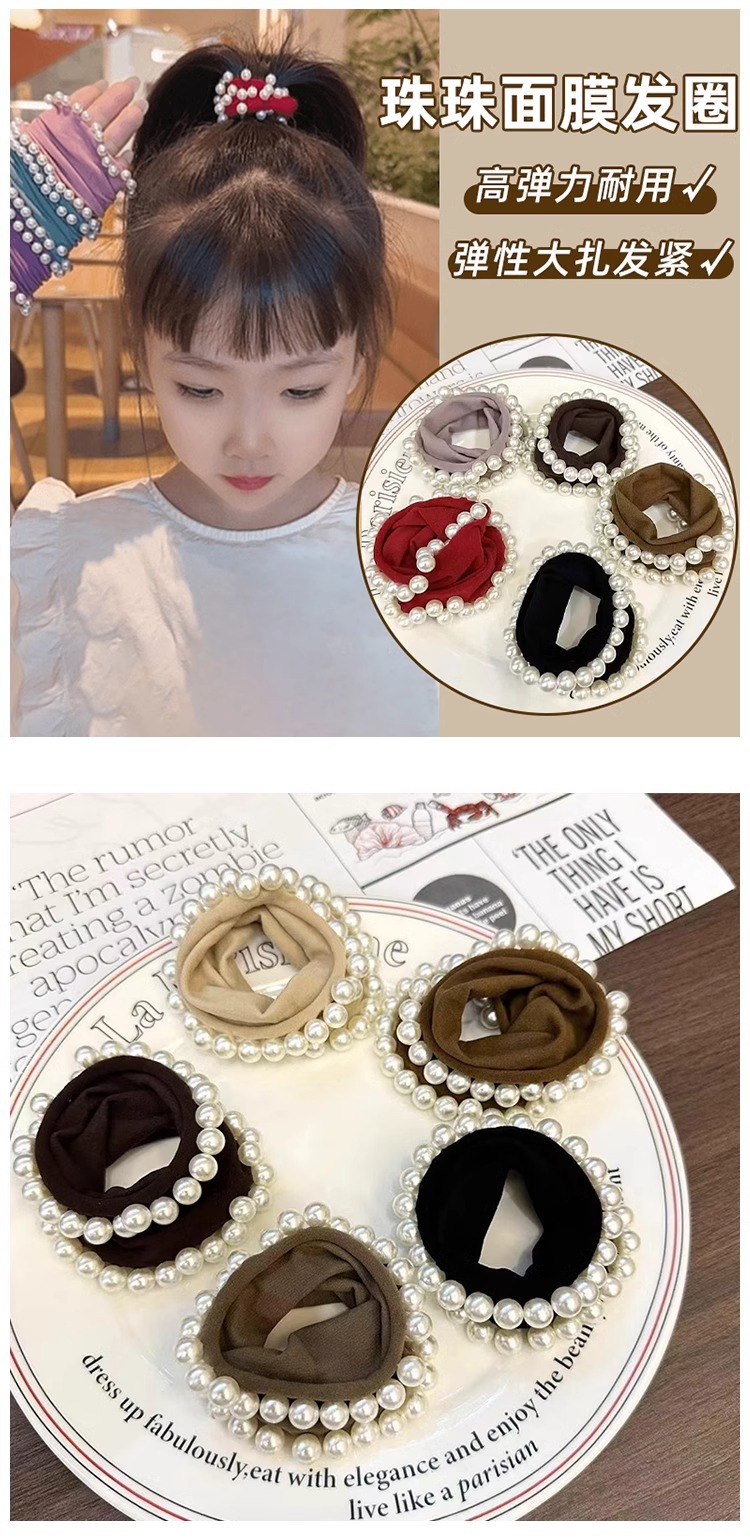 Niños máscaras de perlas anillo para el cabello de niñas de alta elasticidad no lesionar la cuerda de cabello 2024 nueva chica cabello de cola de caballo adornos para el cabello