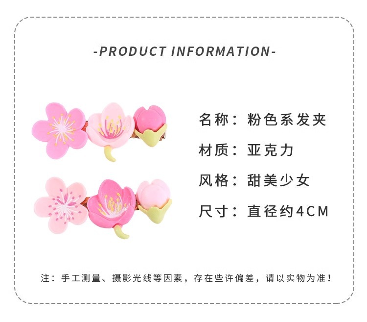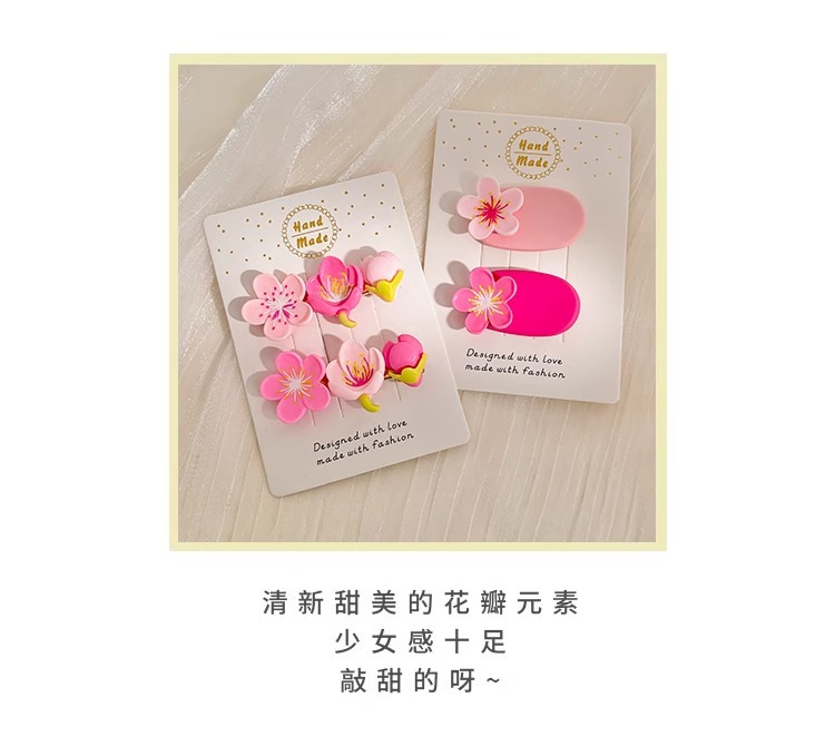 Horquilla de flor rosa para niños, flequillo de cabello roto en el costado de la frente de las niñas, tocado de clip de pico de pato lindo para niña