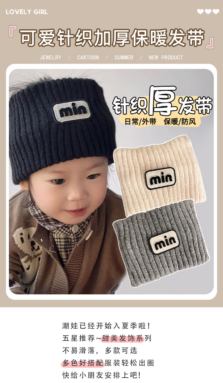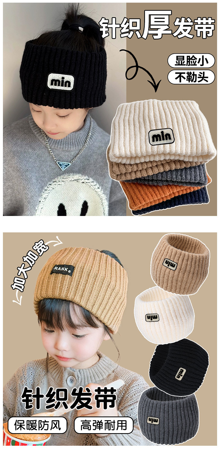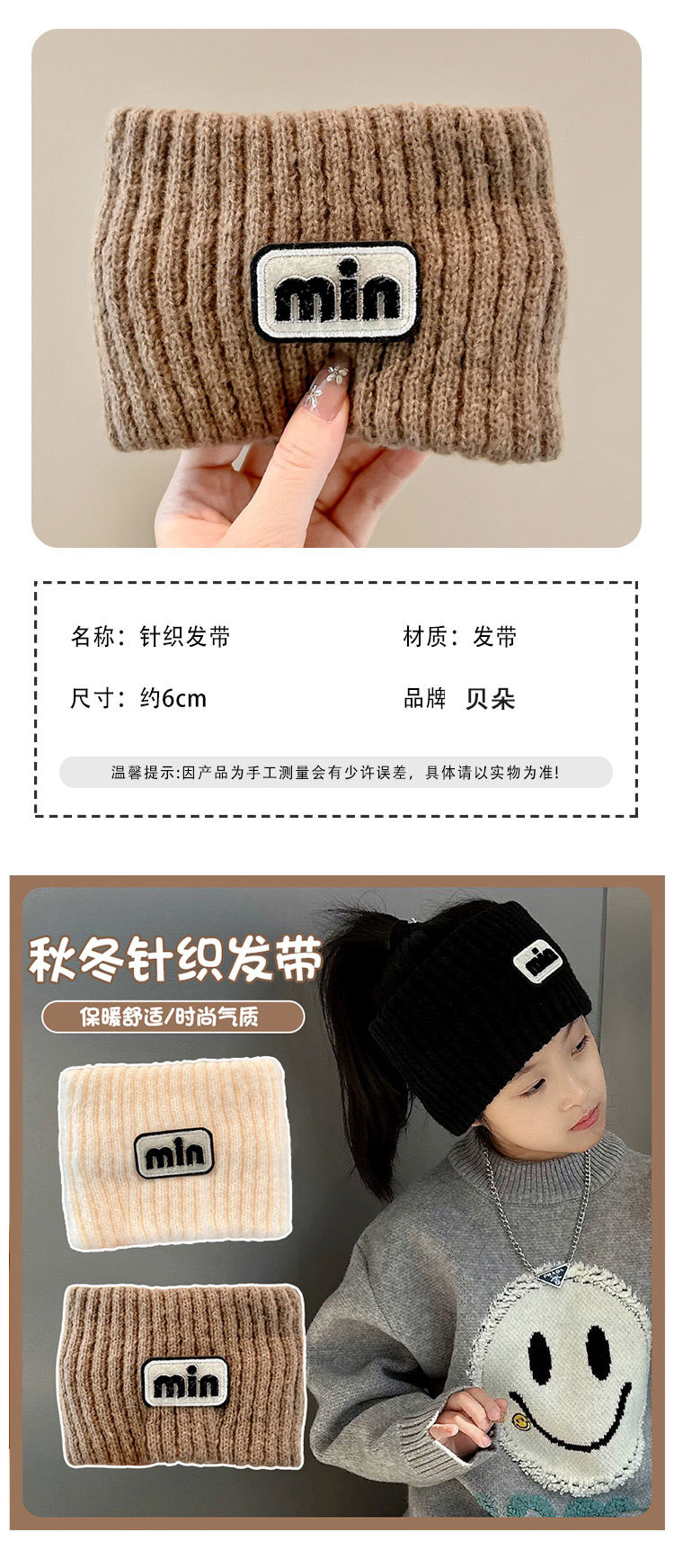 Otoño y invierno tejido banda ancha para el cabello de los niños a prueba de viento frente banda de cabello para las mujeres 2024 nuevo paquete de letras banda de cabello tierna