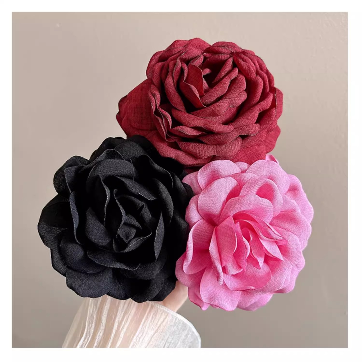 Rosas rascar flores de tiburón brocas de boca flores grandes brocas de cabello de cabeza de mujer rascar flores de tiburón brocas de cabello tocado