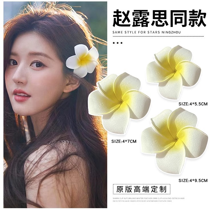 Huevo flor clip lateral clip lateral de alta calidad mujer 2025 nuevo tocado de cabello de flores de playa clip de flores de tamaño grande