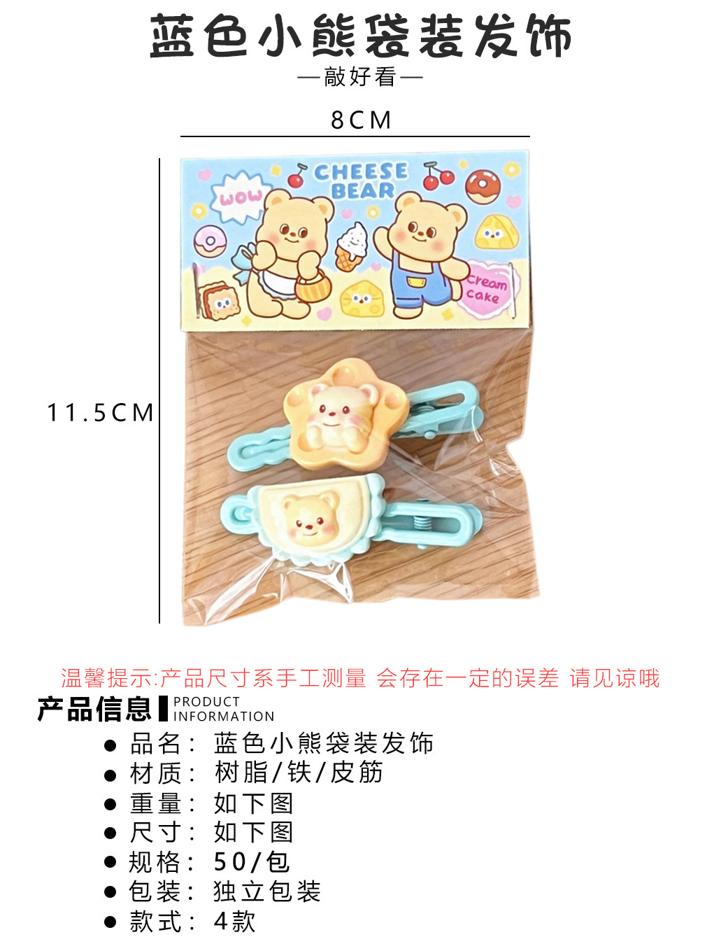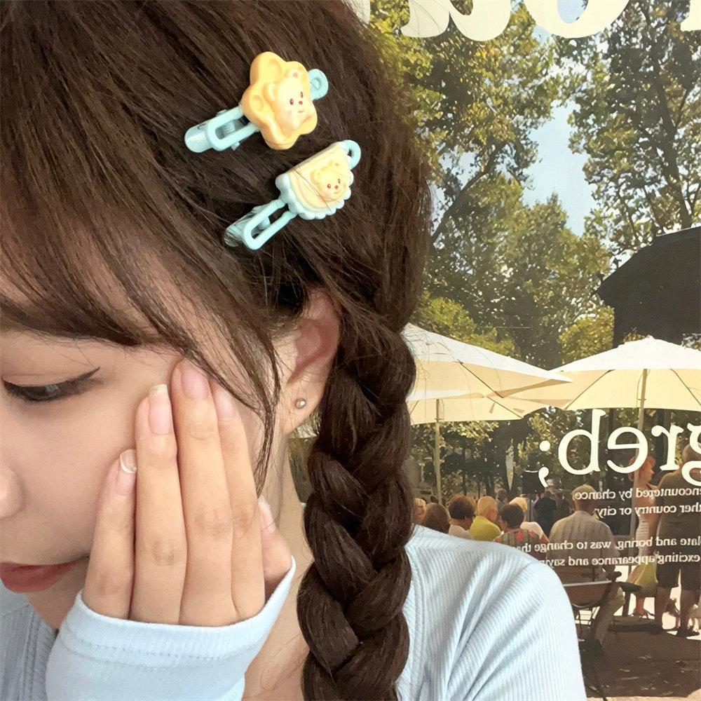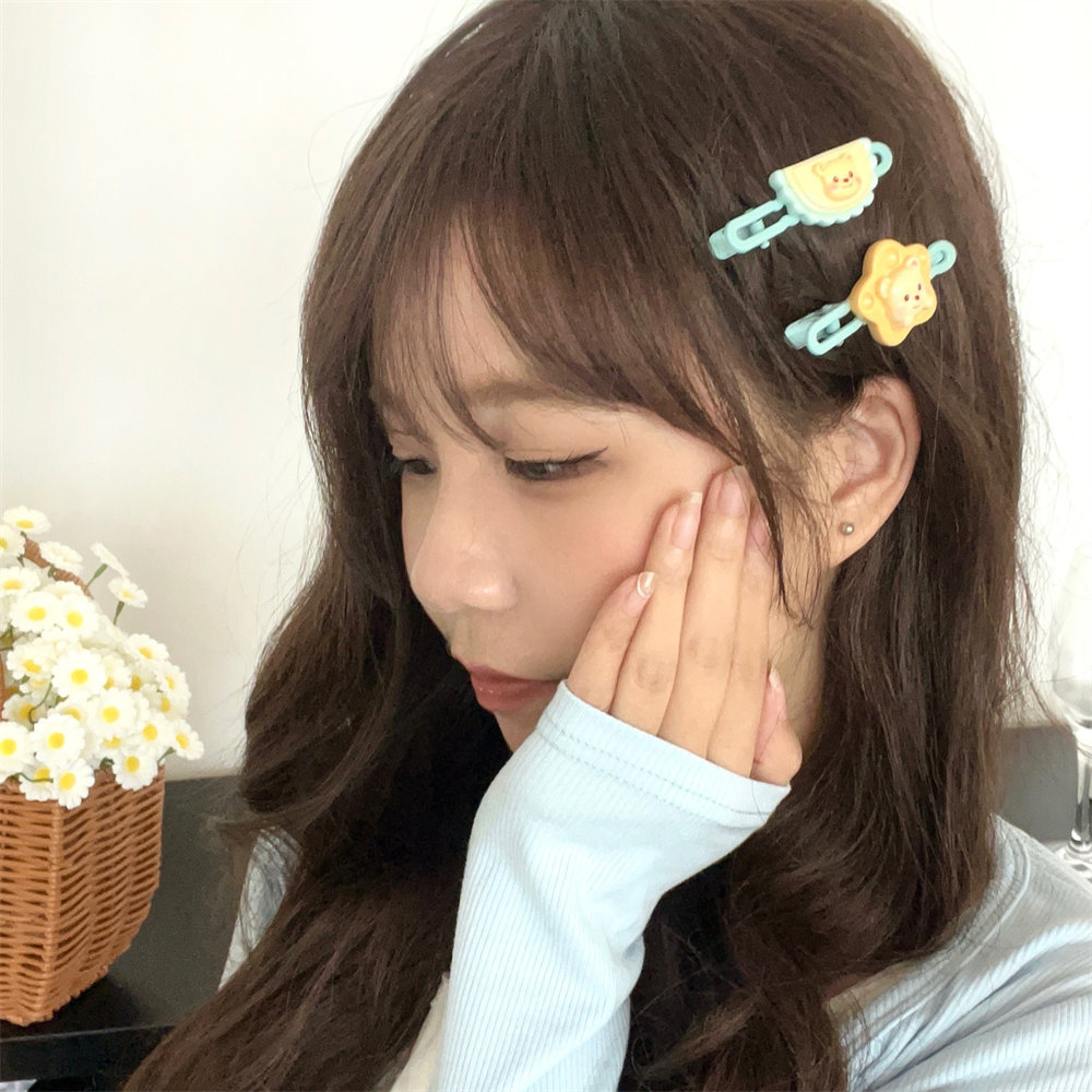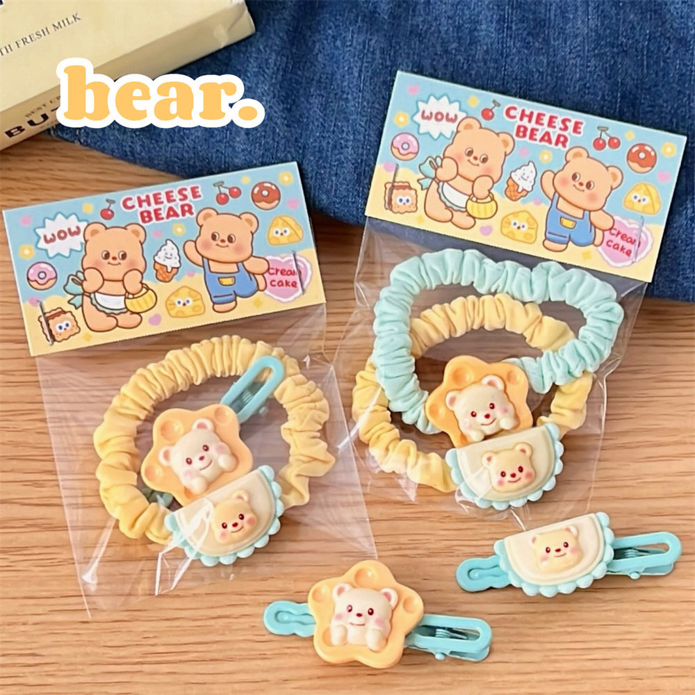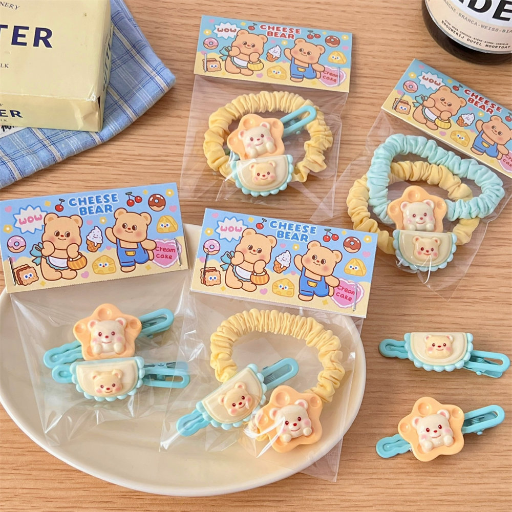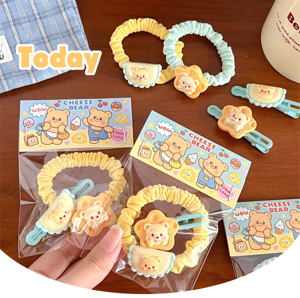 Adorable leche amarilla oso adornamiento de cabello conjunto dulce chica corazón clip de cabello anillo de dibujos animados buquetas clip de cabello cola de caballo cuerda de cabello