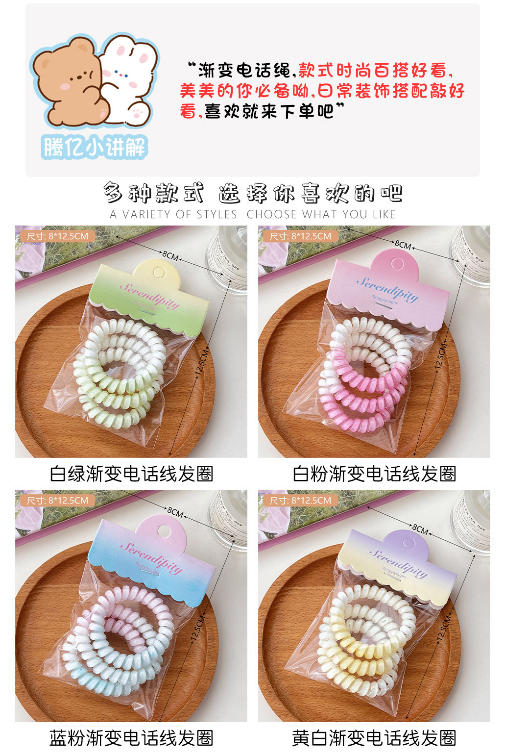 Verano línea telefónica gradiente conjunto de cabello de cabello de alta elasticidad cabello de cola de cabello de niñas base diaria correa de cabello adornamiento de cabello