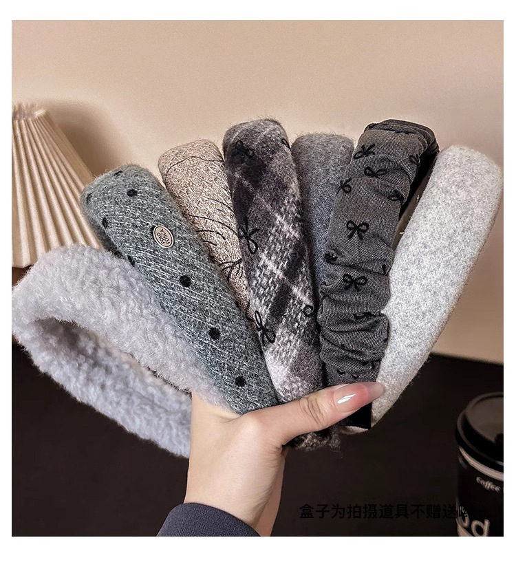 Otoño e invierno peluche gris banda de cabello de mujer alta sensación de salir alojado clip de cabello alto cráneo banda de cabello tocado