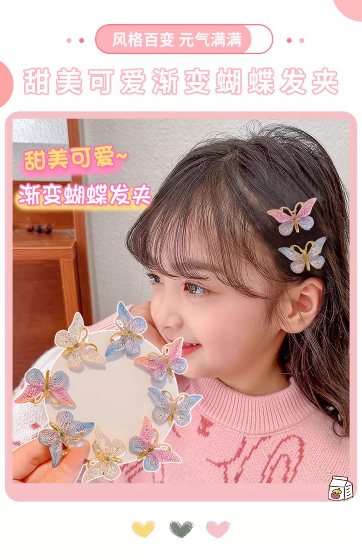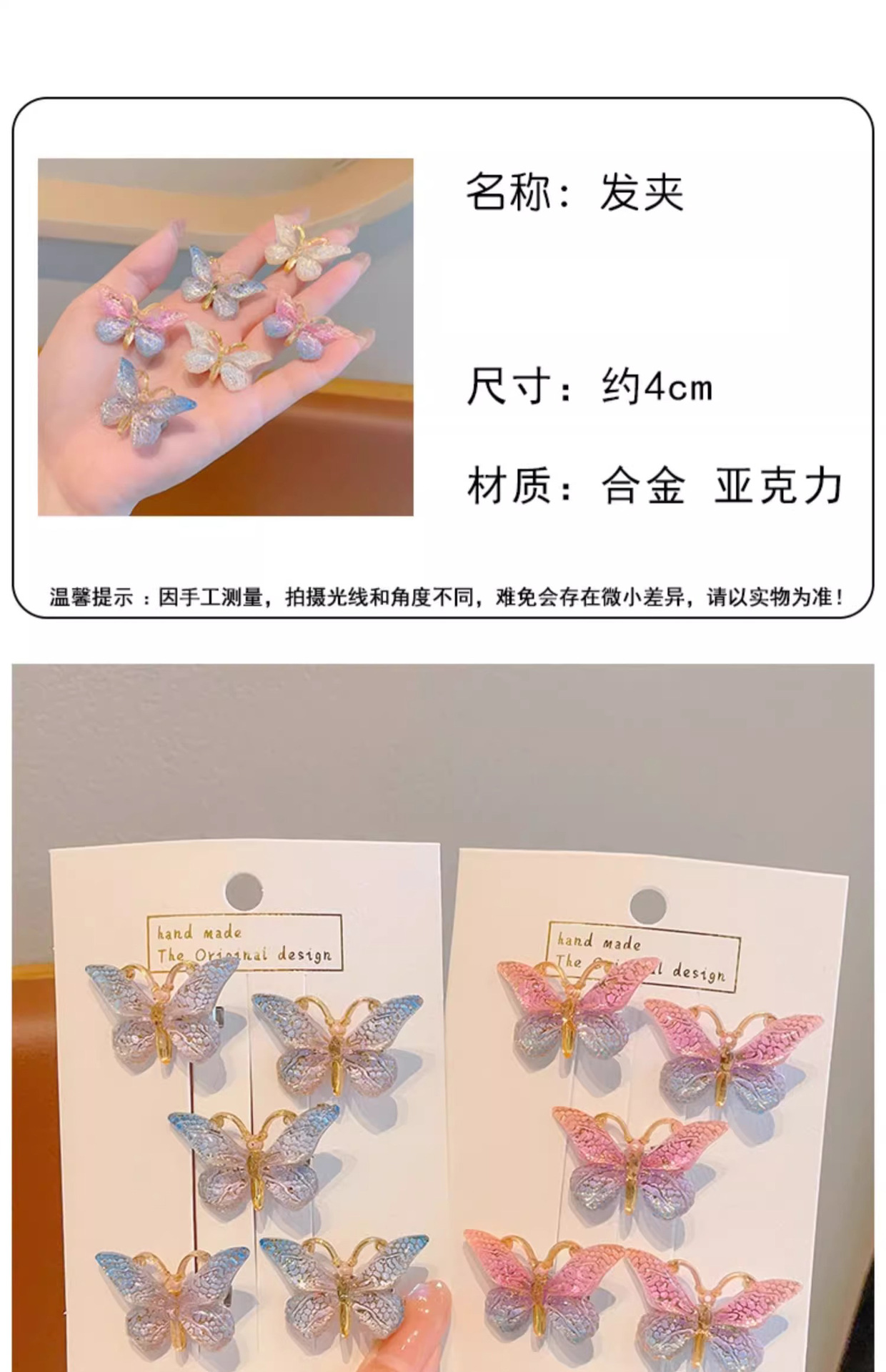 Estilo explosivo Super Fairy Symphony Horquilla de mariposa tridimensional Clip de pelo roto femenino Tocado Clip de pico de pato Horquilla para niños con sentido avanzado