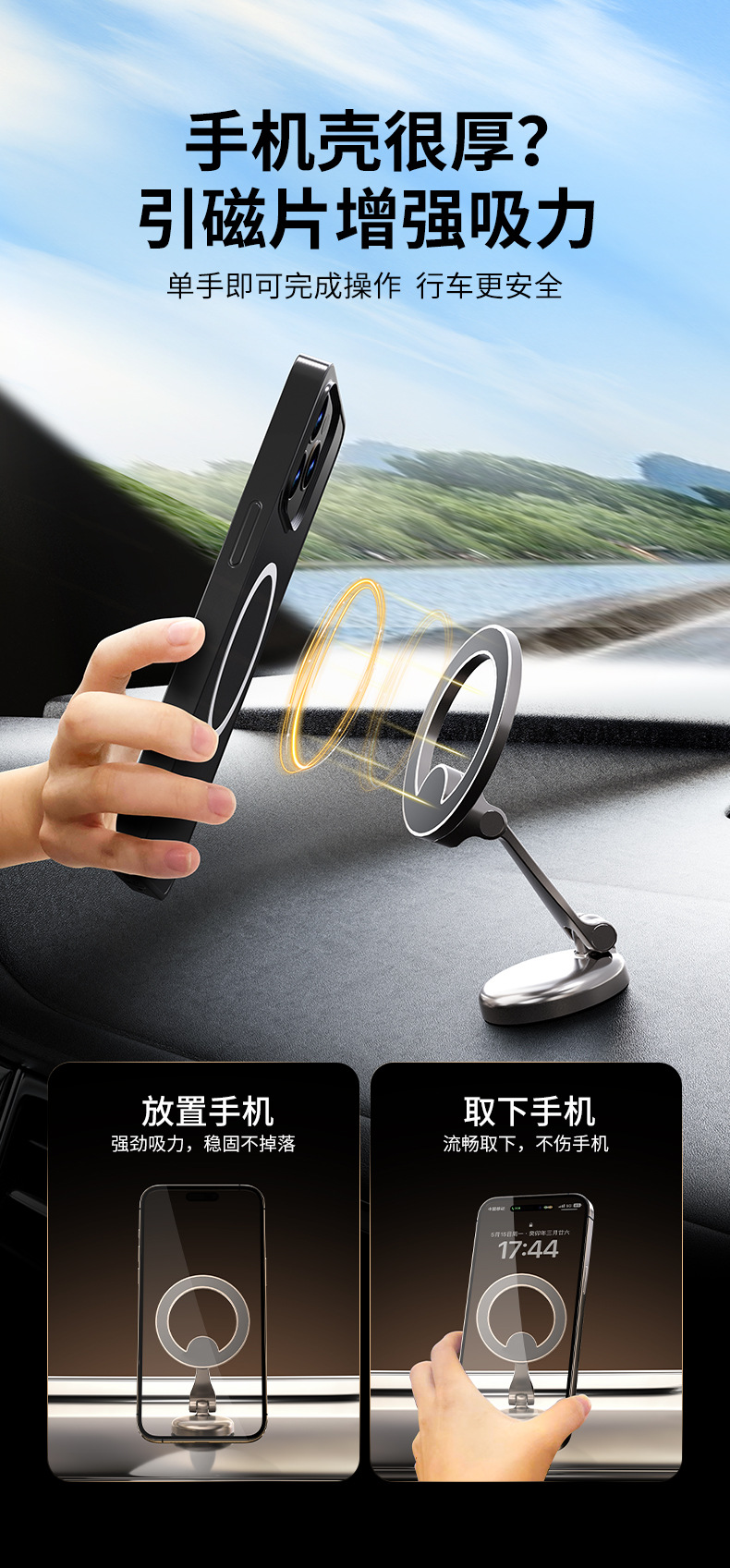 Nuevo soporte de teléfono móvil de coche de metal plegable magnético especial anti-vibración N52 soporte de coche magnético fuerte