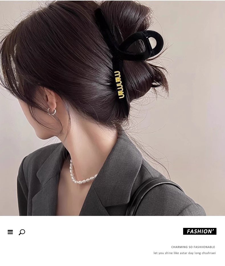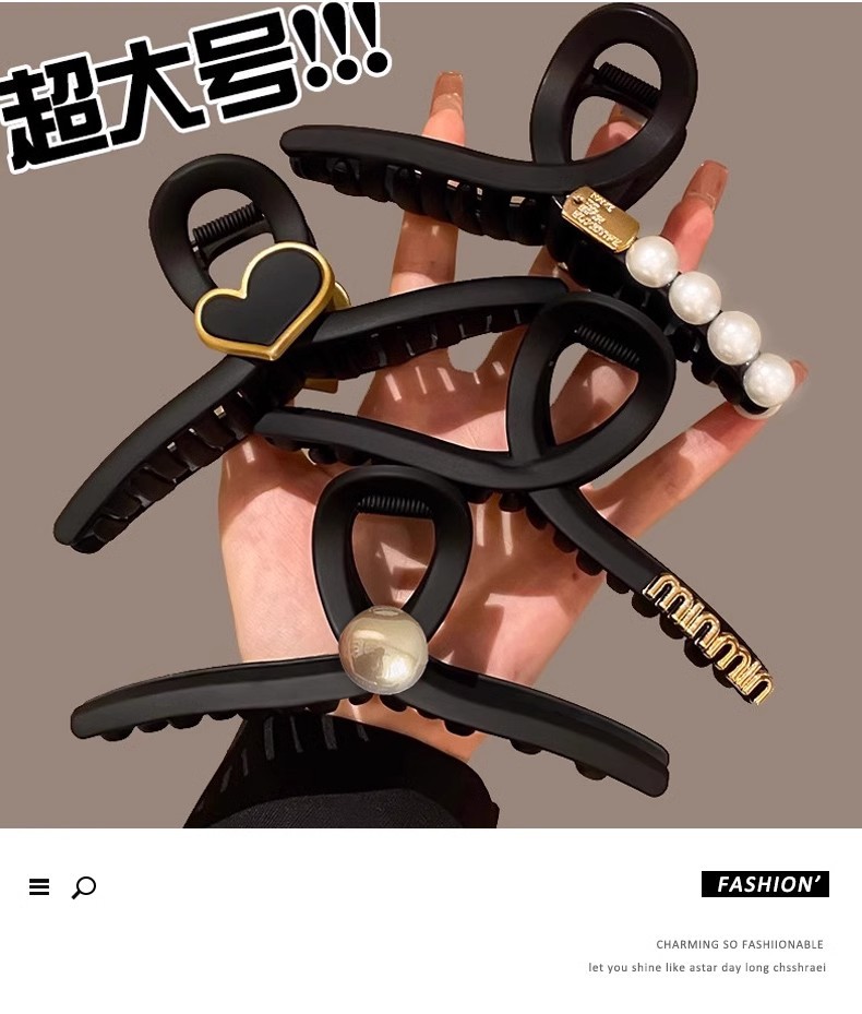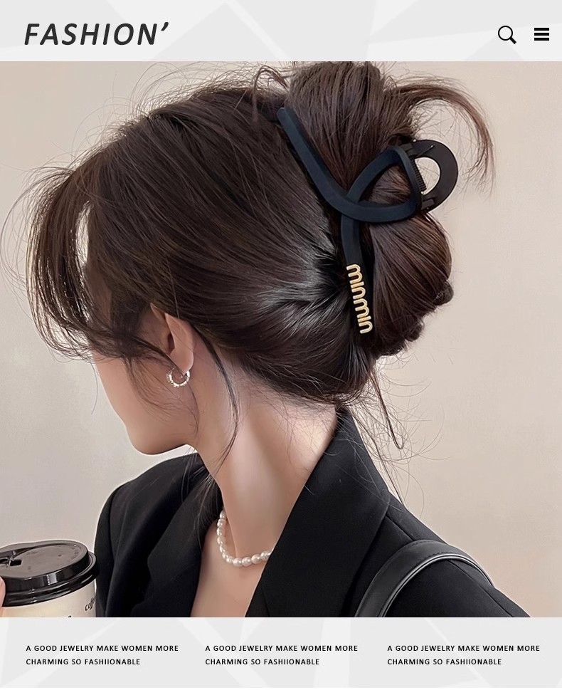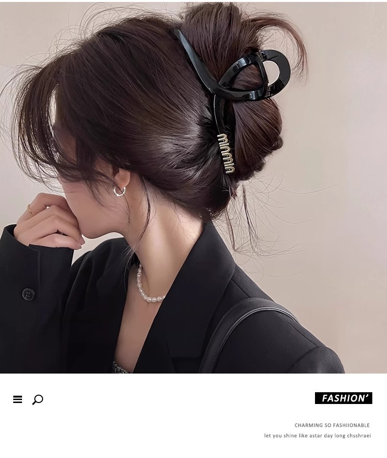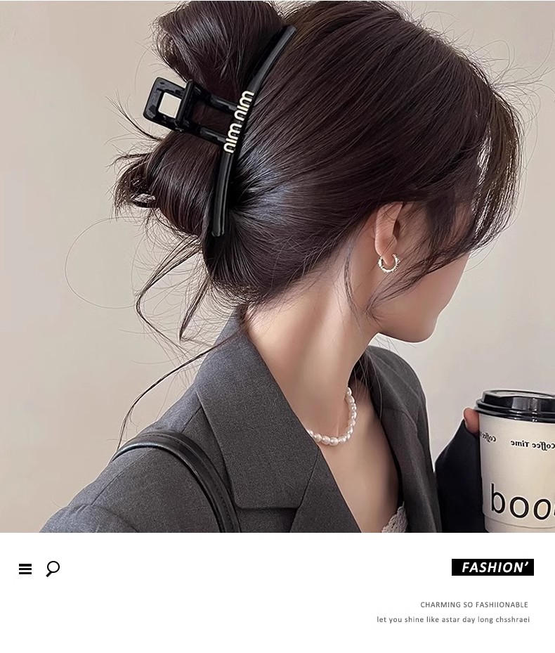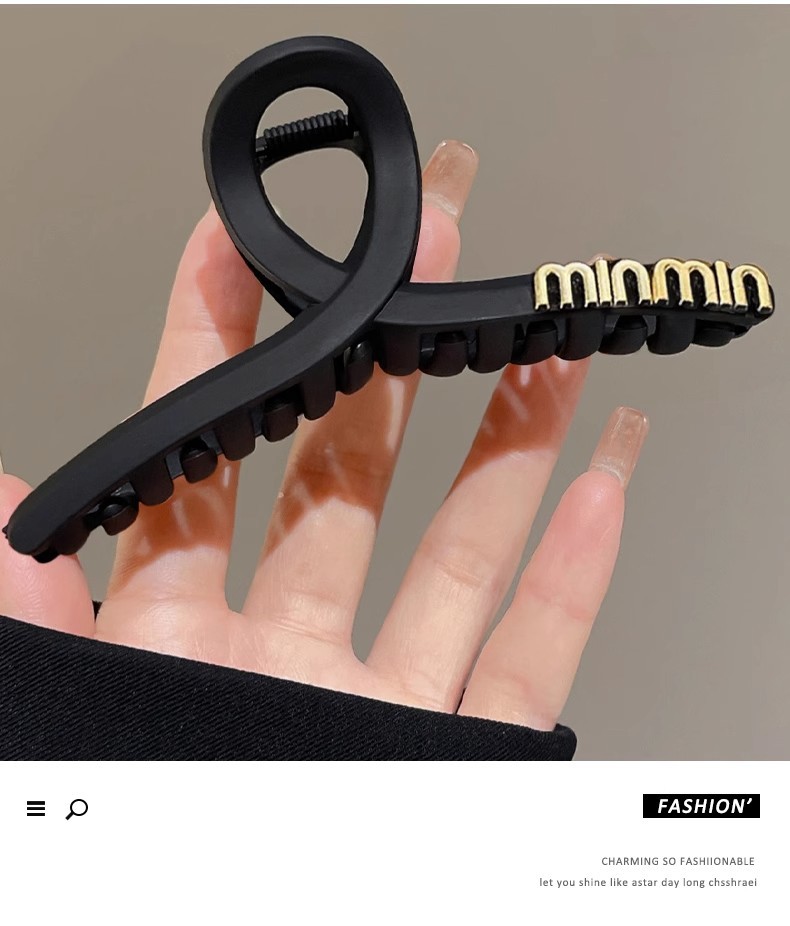 Clip de agarre de letras negras para mujeres simple detrás de la cabeza clip de cabello de tiburón sensación de alta calidad clip de cabello de cabello de gran tamaño