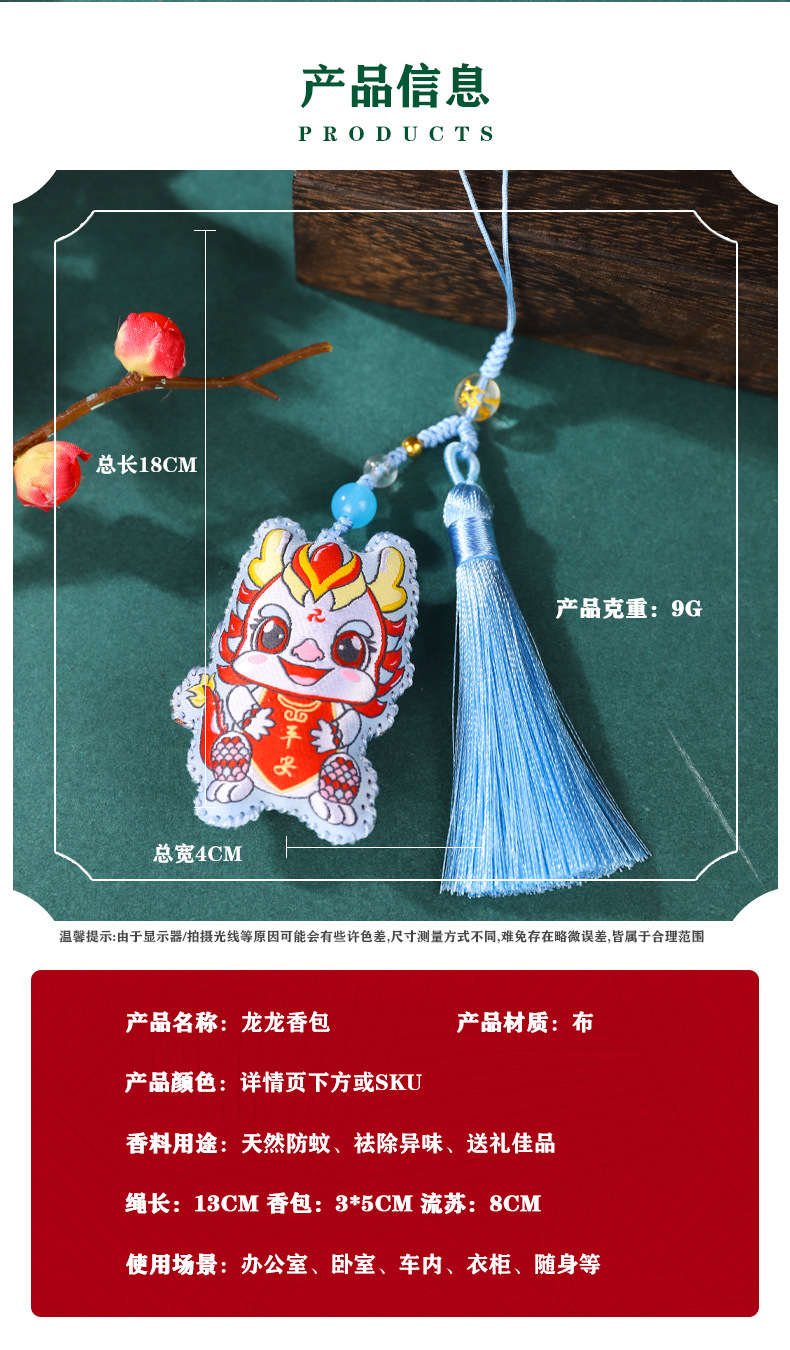 Guochao Dragon Year Sack Mascot Xianglong Sack regalo de Año Nuevo lugar escénico Wenchuang dragón colgante accesorio regalo acompañante