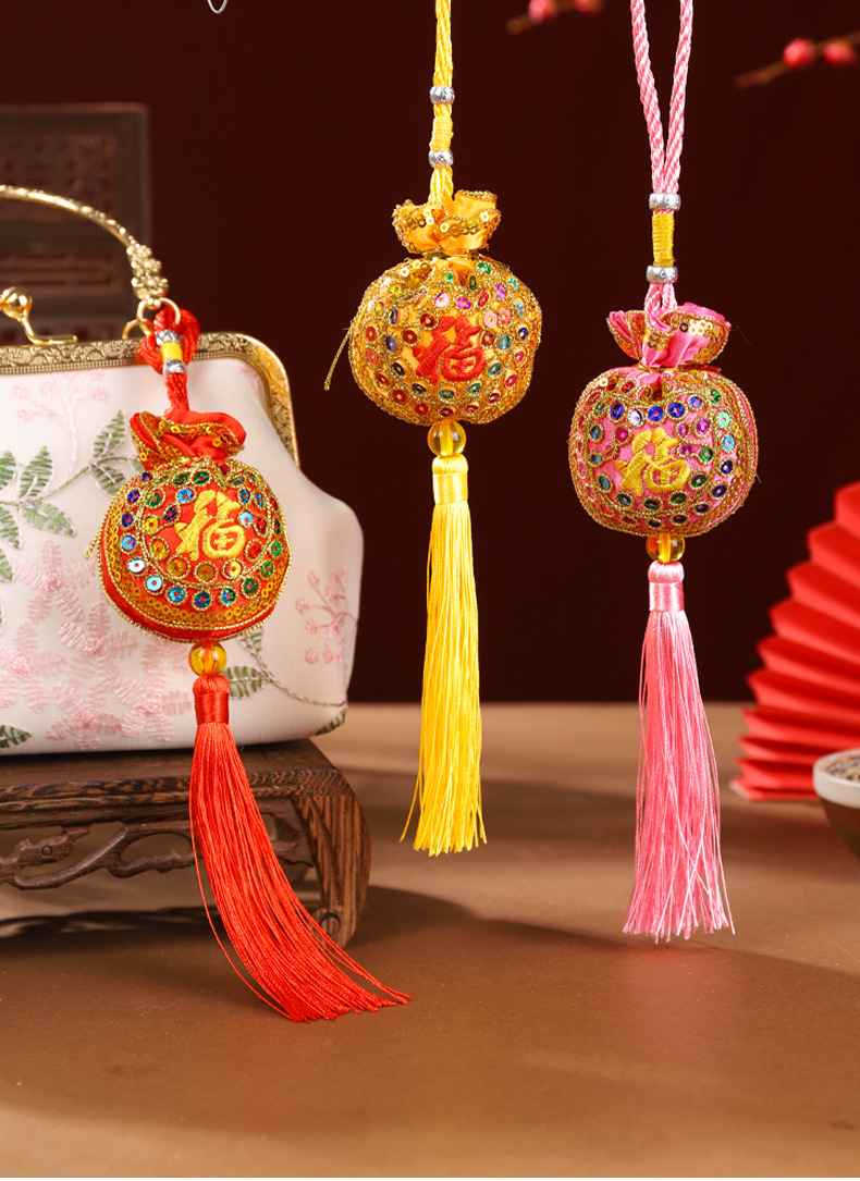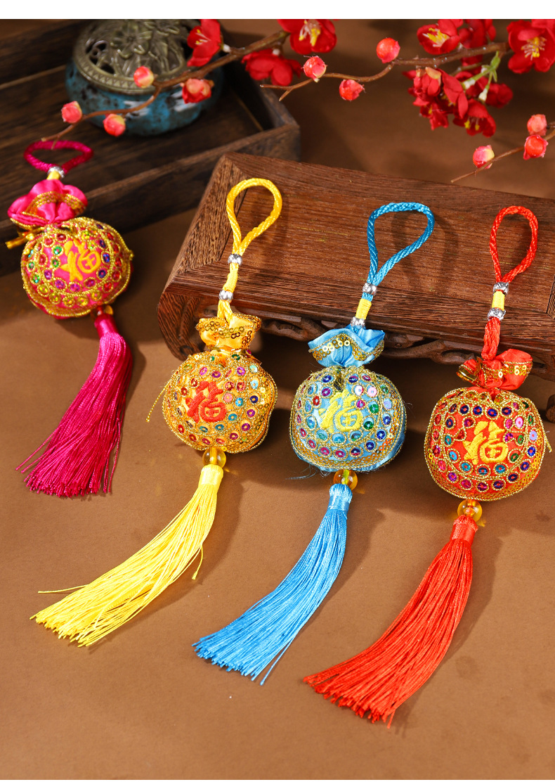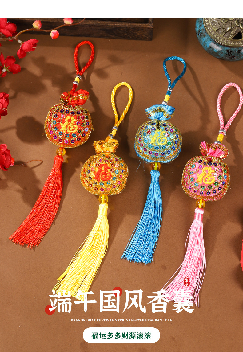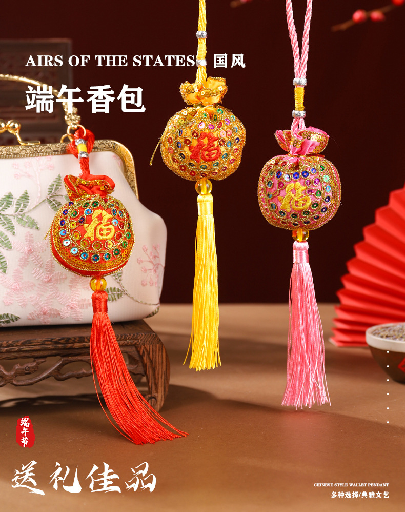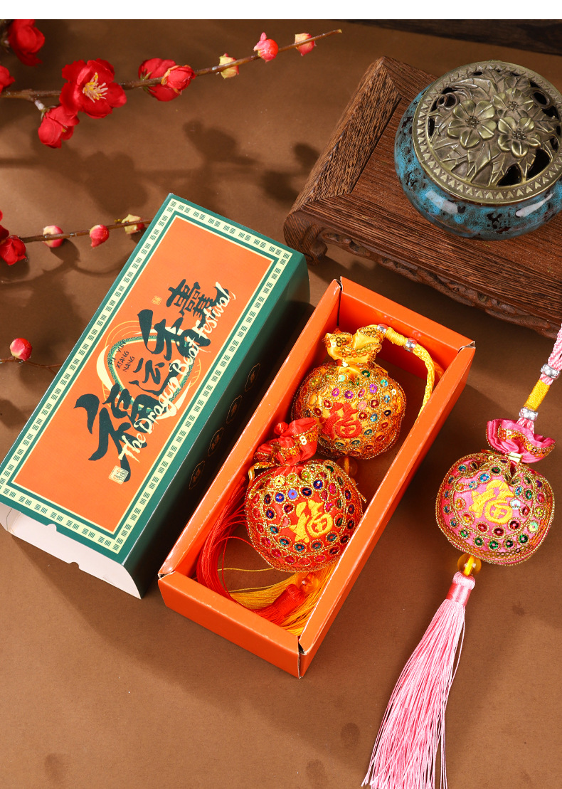 Bolsita del Festival del Bote del Dragón Bolsita del Festival del Medio Otoño Bordado Bolso de la suerte Colgante del amuleto de la paz Regalo del día del niño Colgante del coche