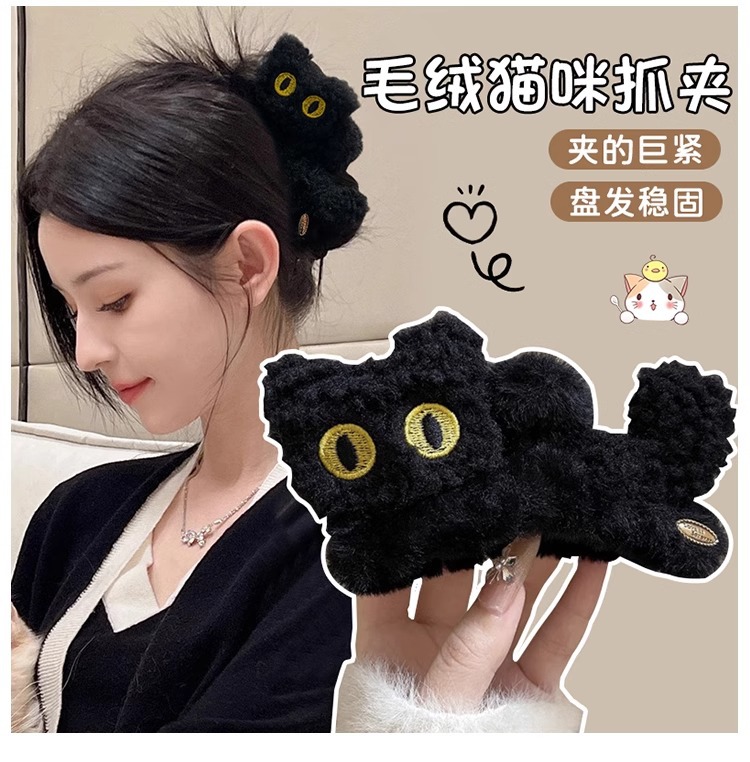 Otoño e invierno lindo lindo peluche estereoscópico lindo gato agarre clip nuevo clip de cabello de gatito coreano en la parte posterior de la cabeza clip de tiburón