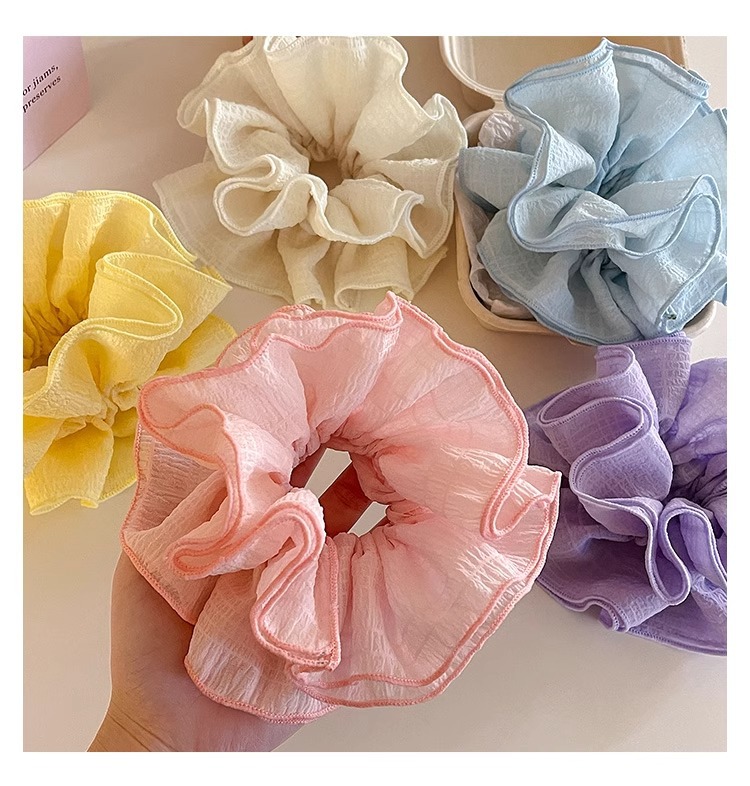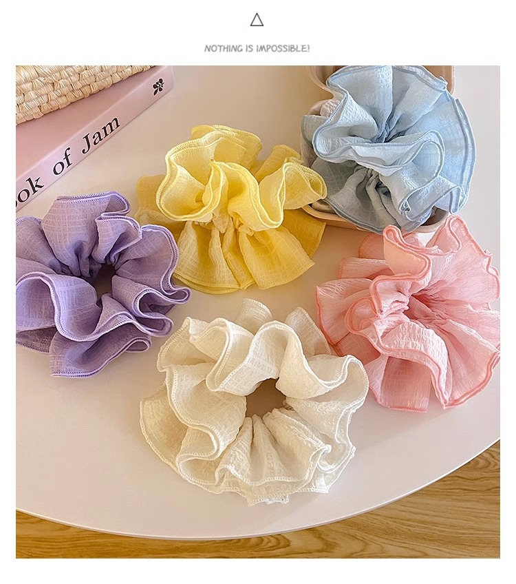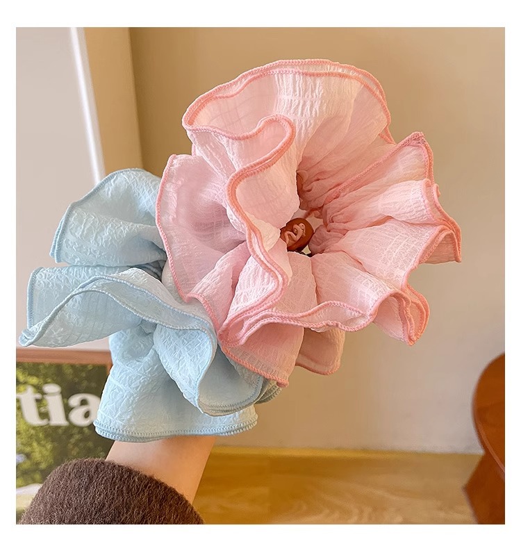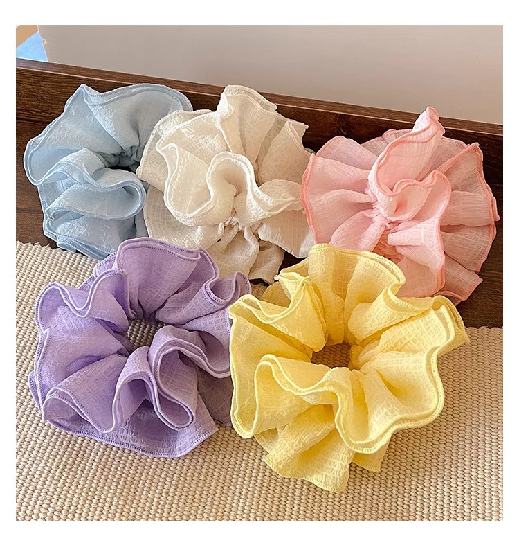 Nuevo anillo de cabello color caramelo super inmortal de cuatro capas de malla de flores de hadas de alta calidad coreana plegado adornos de cabello de cuerda de cabello