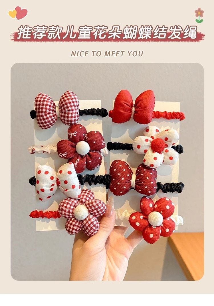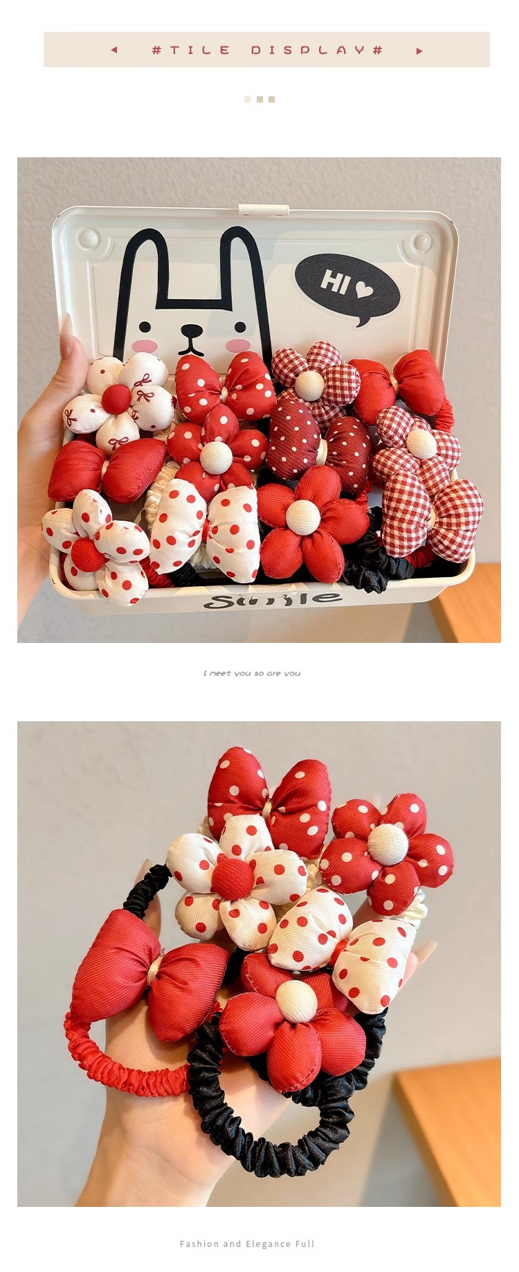 Niños Anchorá flores rojas cabello niñas lindas arco del intestino delgado anillo de cabello para saludar Año Nuevo niña pequeña cabeza de cabello adornamiento