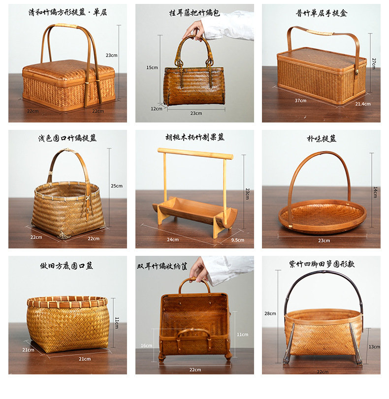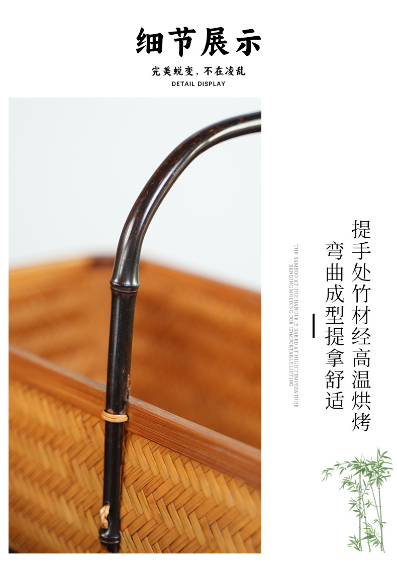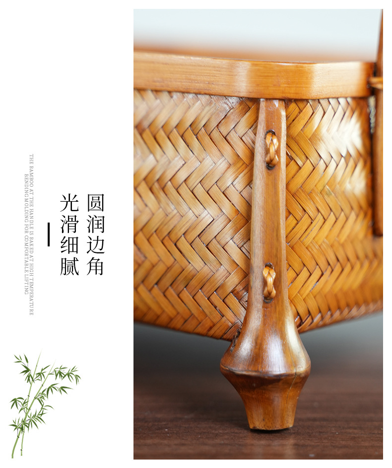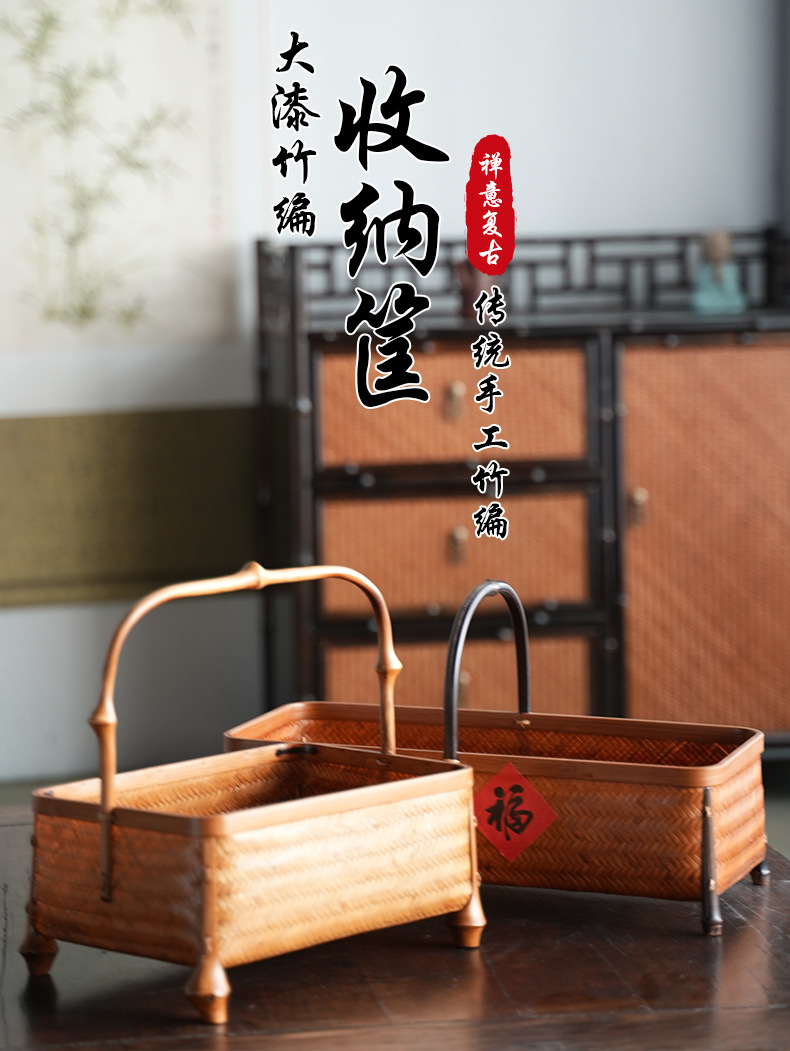 Artesanías de bambú tejidas a mano bambú gran laca cesta nueva casa china sala de estar cesta de almacenamiento de té retro cesta de almacenamiento