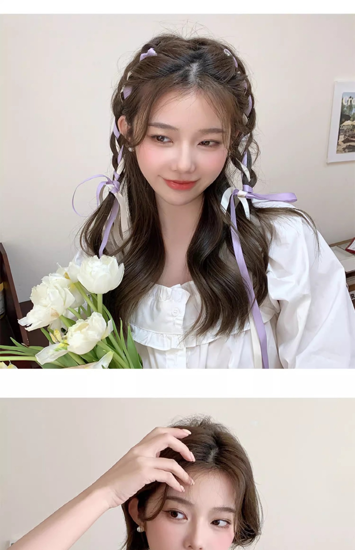 Explosión trenzada cinta de cabello tocado doble cabello arco de cola de caballo correa de cabello para mujeres correa de cabello correa de cabello flotante