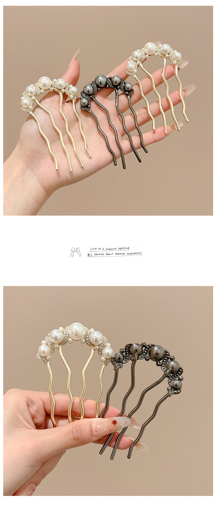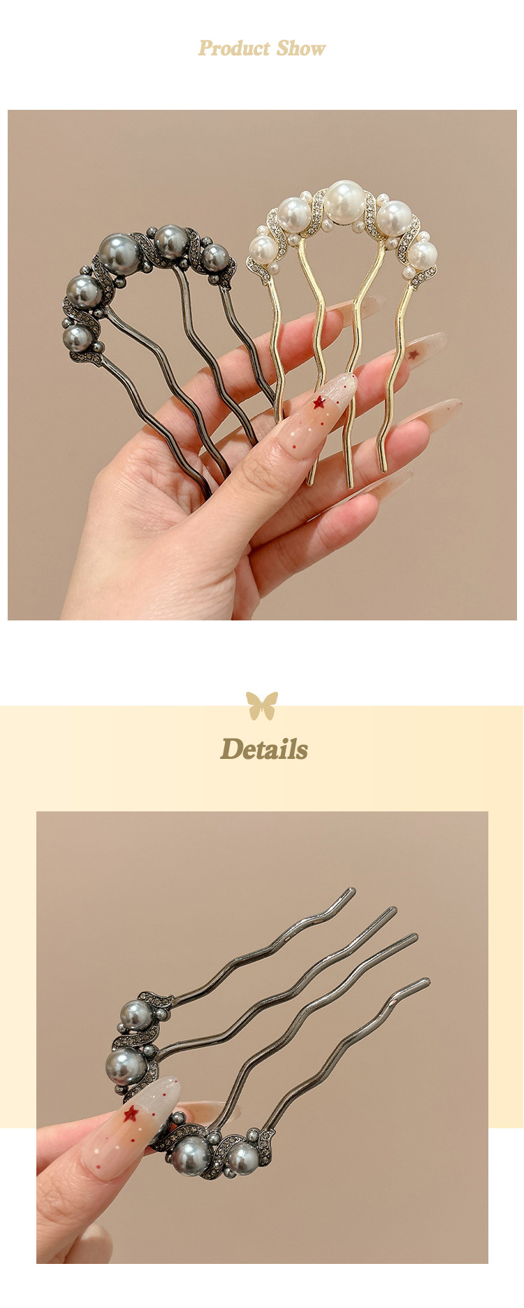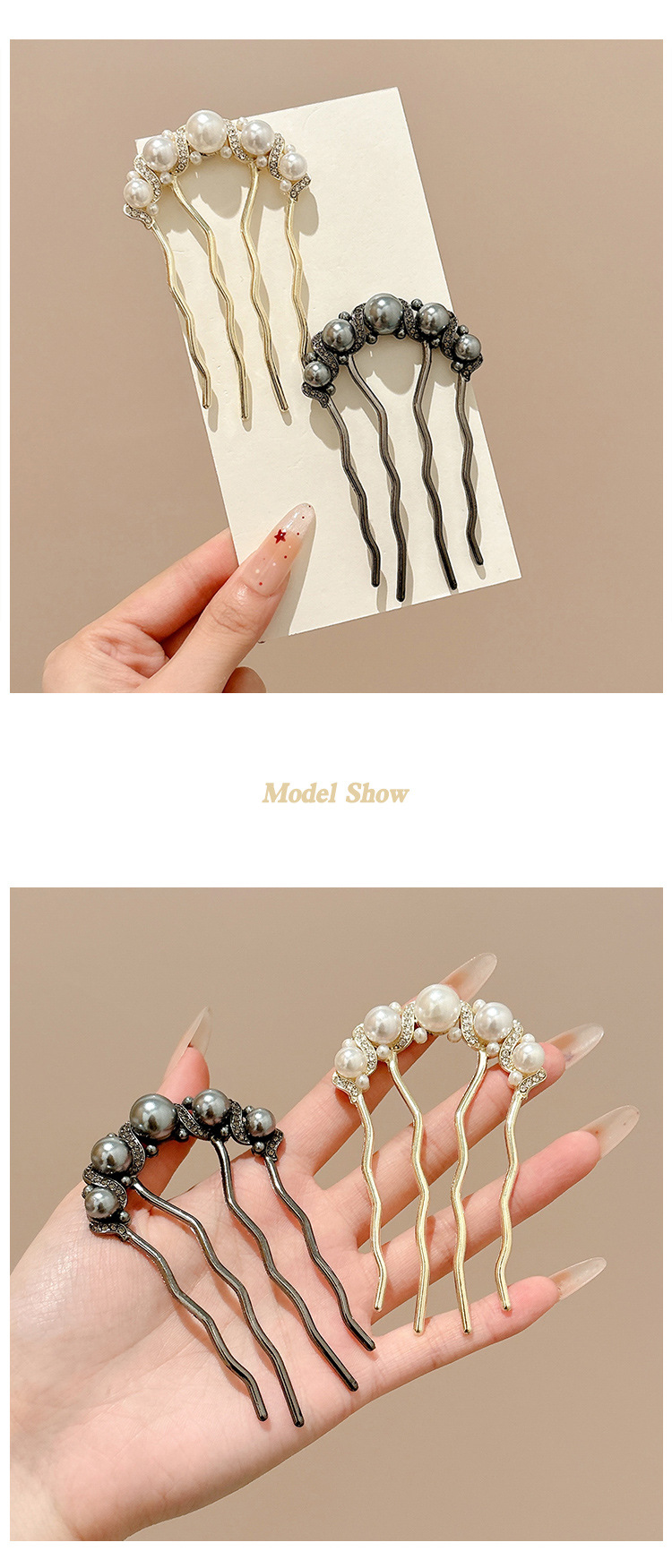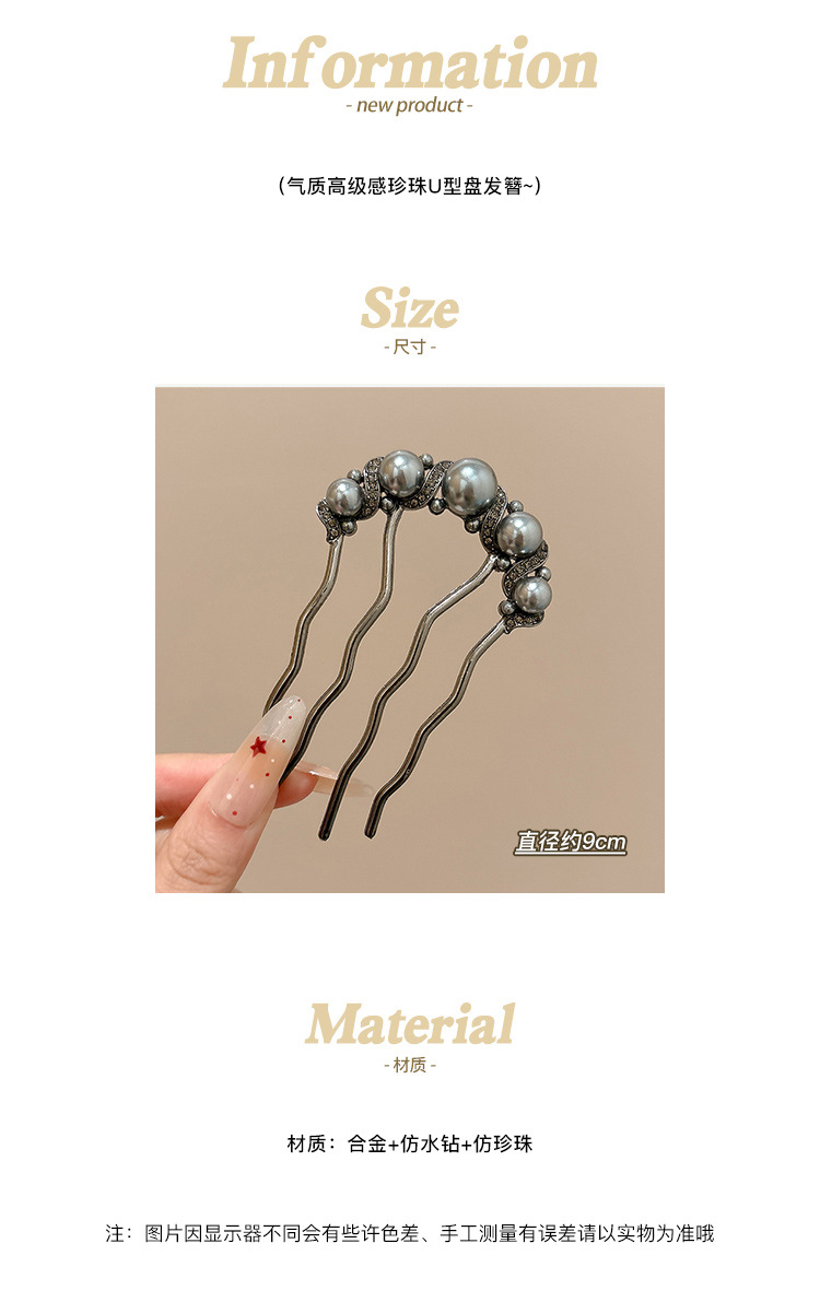 Perla de alta sensación pinzas de cabello en forma de U para las mujeres 2025 nuevo cabezal de cabeza posterior bola de cabeza pinzas de cabello pinzas de cabello tocado