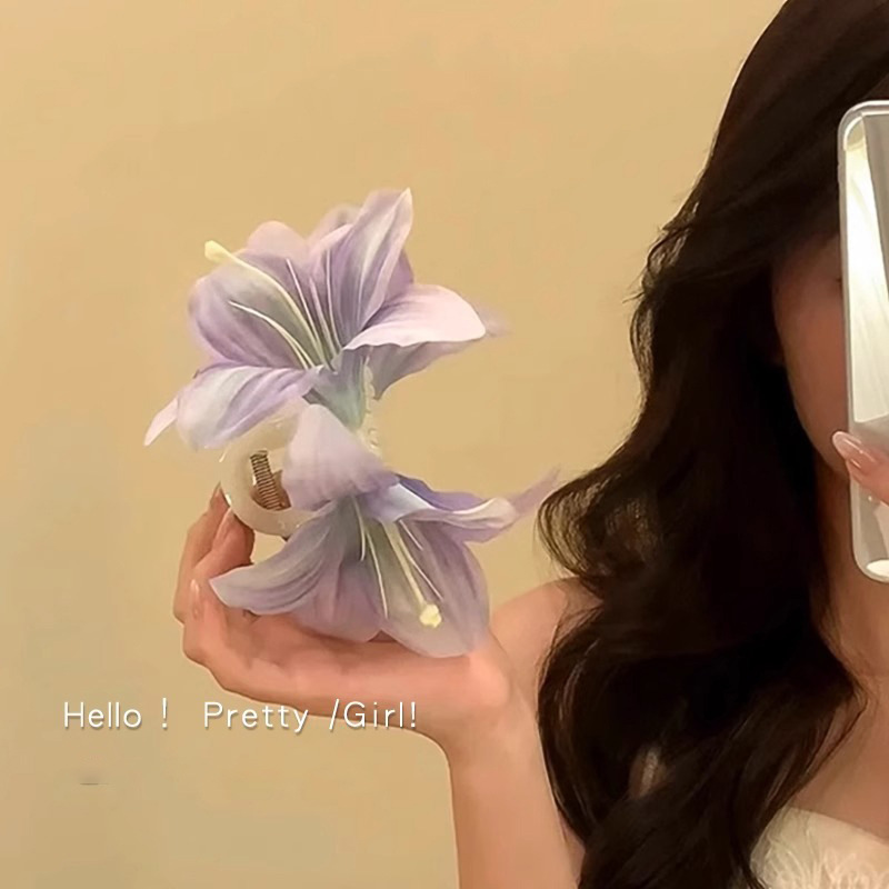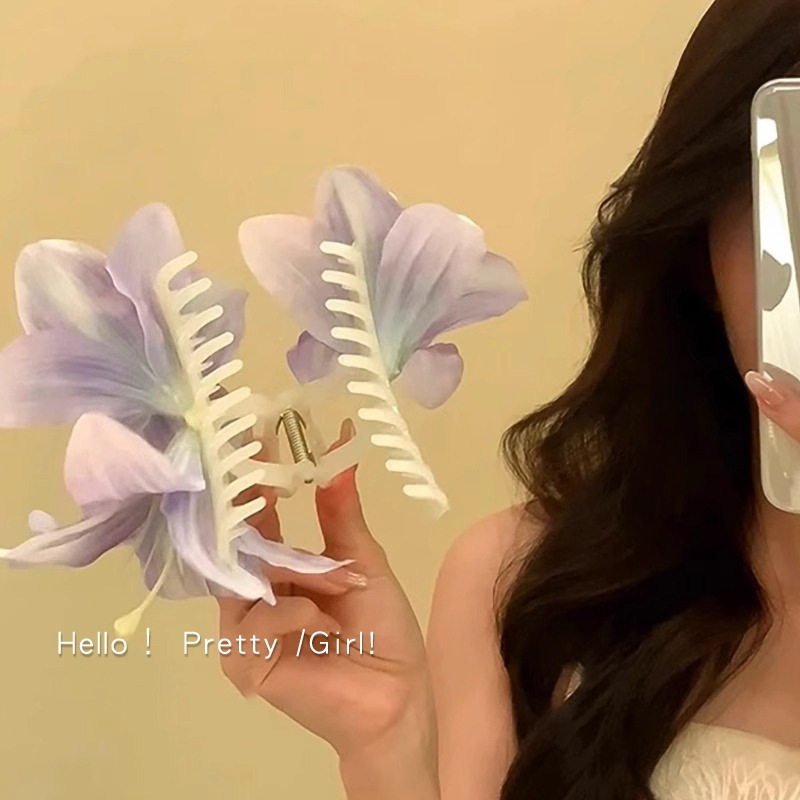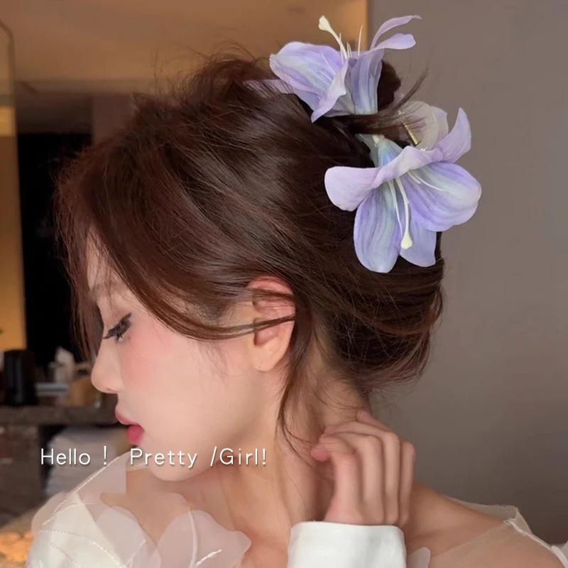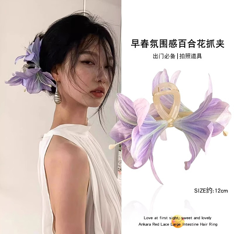 Coreano super belleza estereoscópica lirio agarrar clips de flores de alta calidad mujer cabeza trasera clips de tiburón temperamento tocado