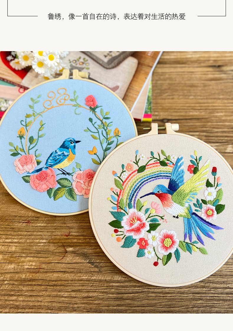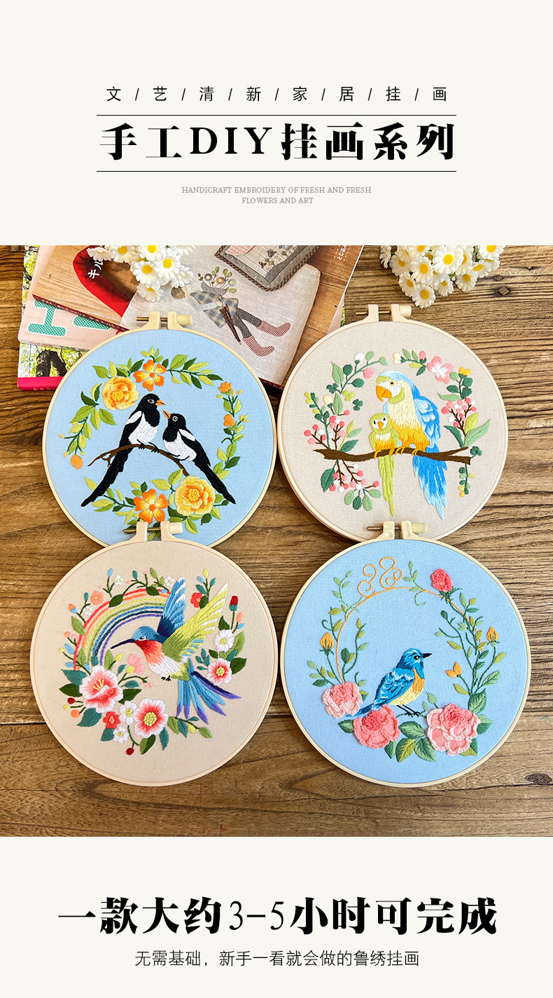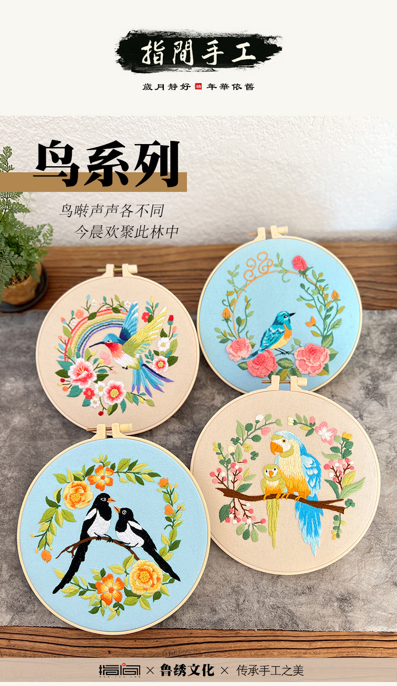 Lu serie de bordados pájaros bordados DIY material paquete de paquetes de aguja hecha a mano inglés peces peces pinturas decorativas de sala de estar