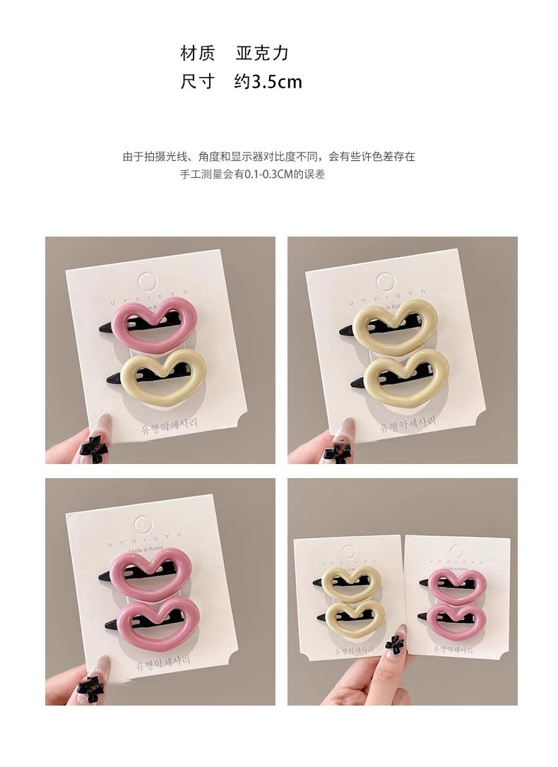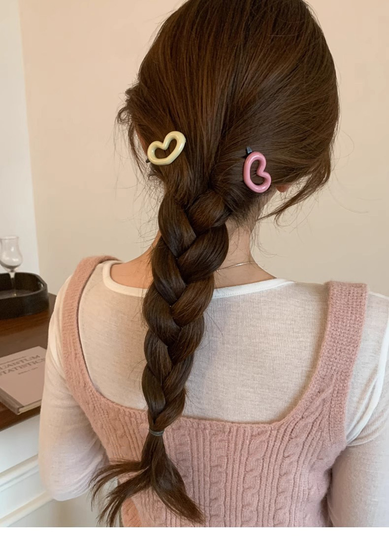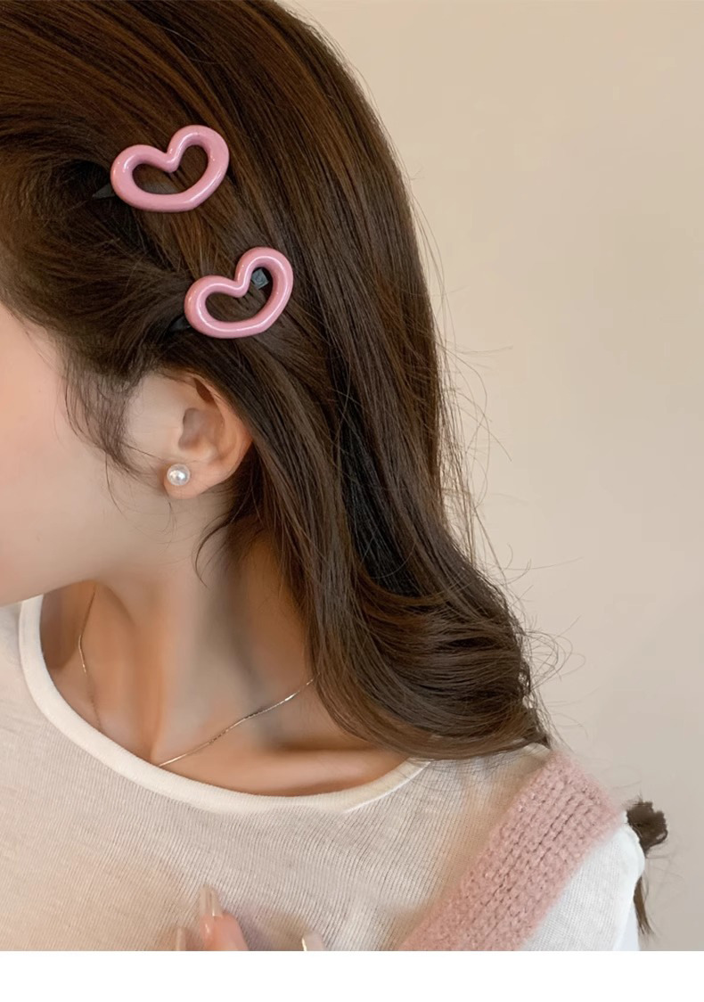 Bonito dulce rosa amor abrazadera de cabello de plástico simple y libre borde lateral frisa abrazadera de cabello en forma de corazón