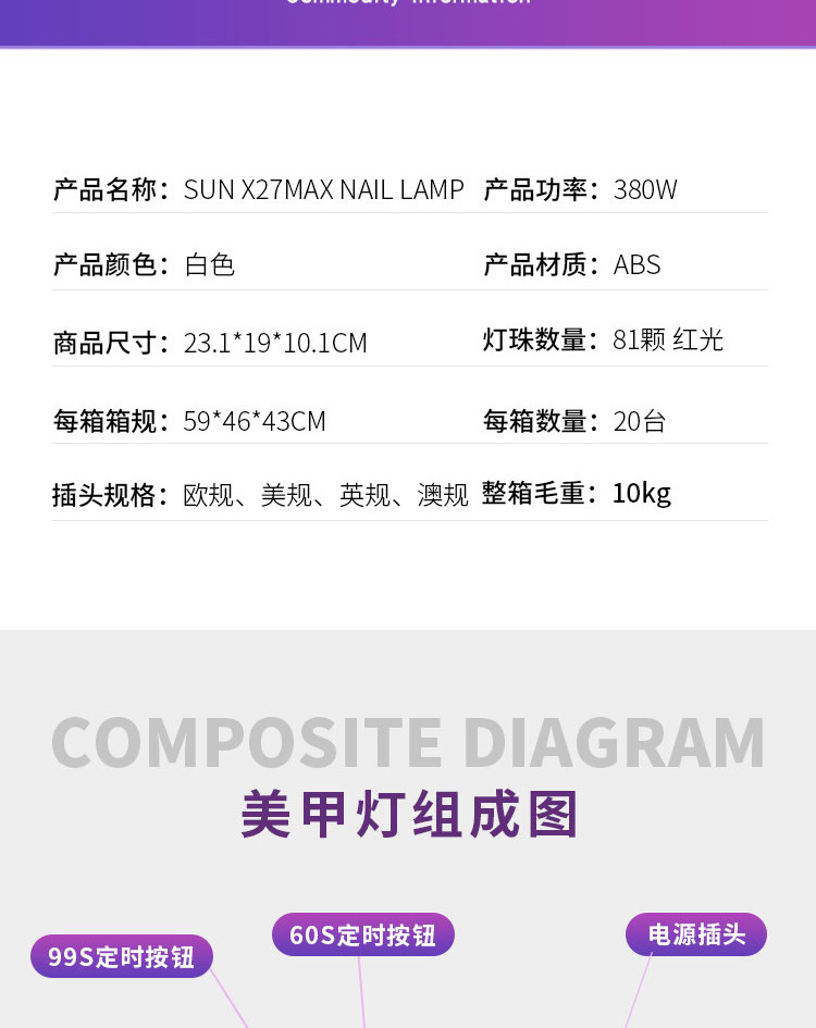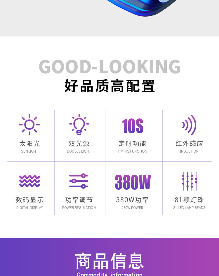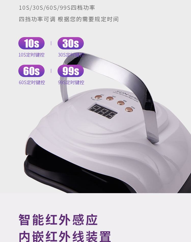 Lámpara de manicuras transfronteriza de alta potencia 380W con lámpara de pegamento de manicuras portátil, lámpara de horneado de manicuras, lámpara de fototerapia inteligente especial para secado rápido