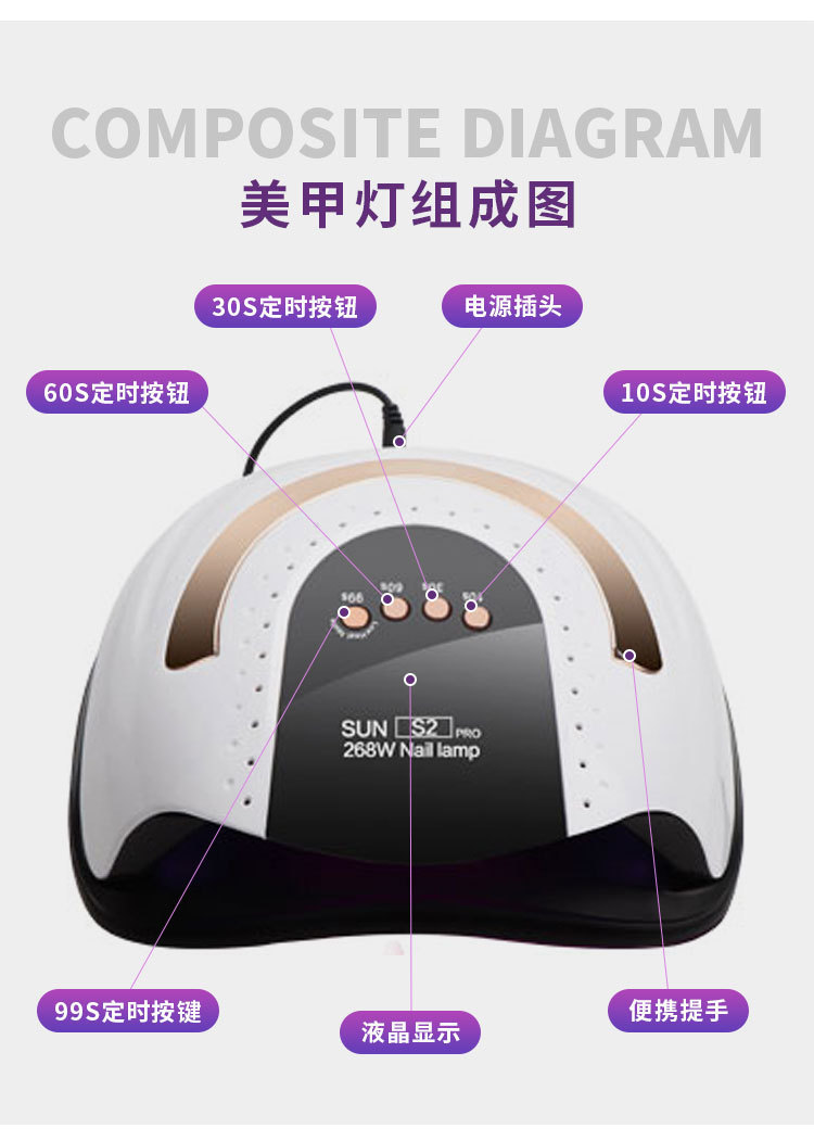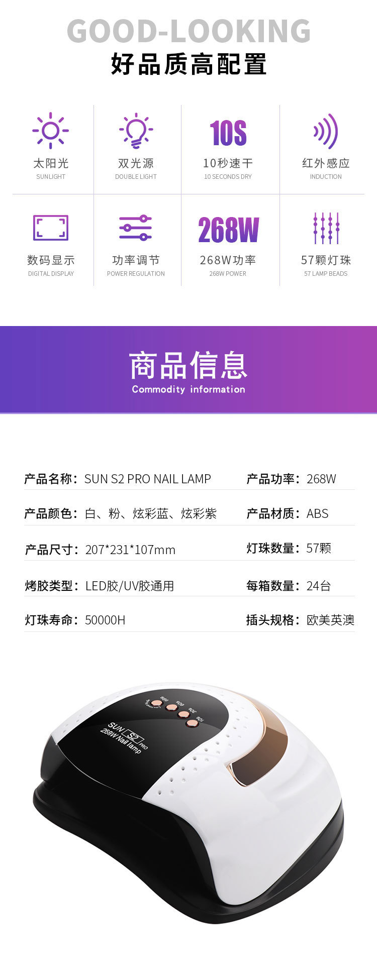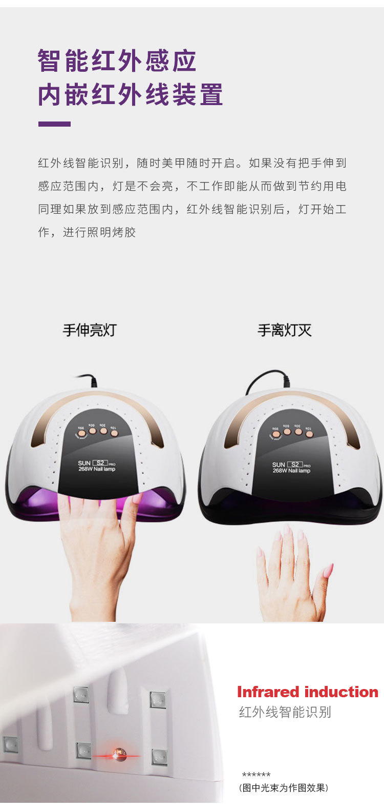 Nuevo modelo con mango, lámpara inteligente para uñas de 268W de alta potencia para fototerapia, lámpara de curado para salón de uñas de secado rápido para gel de esmalte de uñas transfronterizo.
