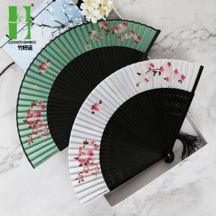 Un gran número de en stock ventilador plegable de estilo antiguo de bambú Hanfu accesorios ventilador de seda se puede utilizar para la impresión de imágenes de regalo artesanal ventilador al por mayor