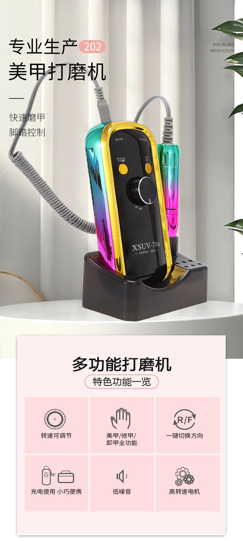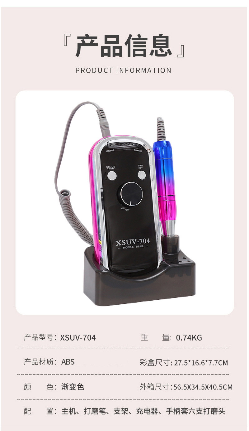 Polizador de uñas portátil transfronterizo 45000RPM Polizador de pulido multifuncional de almacenamiento de energía especial para la tienda de uñas