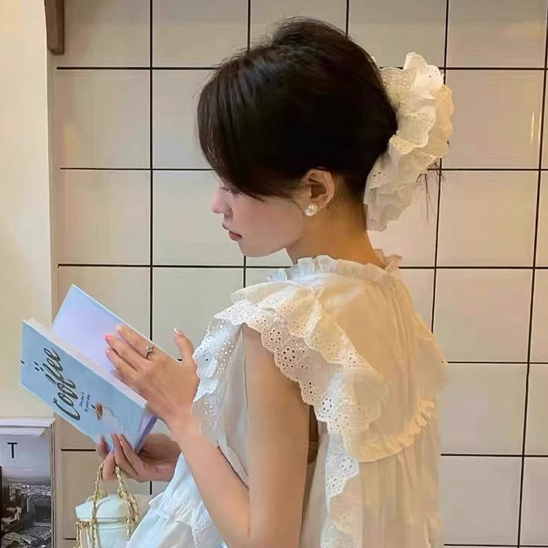 Cabeza de encaje blanco tridimensional francés color collar anillo de cabello para mujeres 2025 nuevo gran temperamento caballo cordón tocado