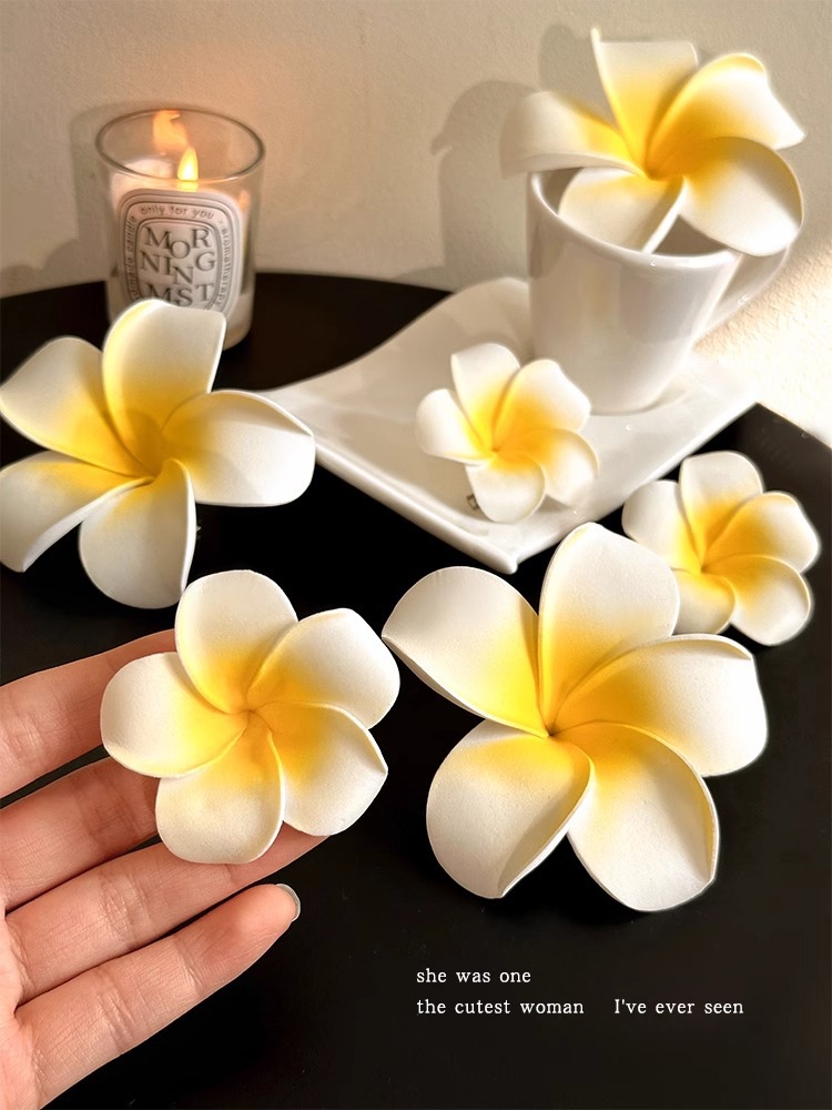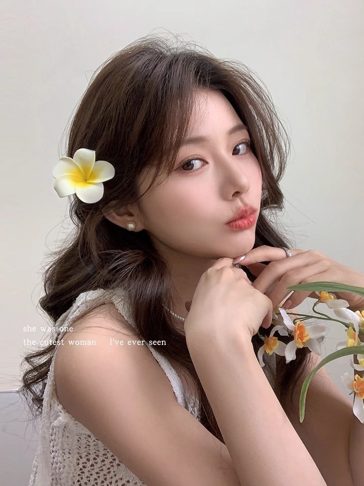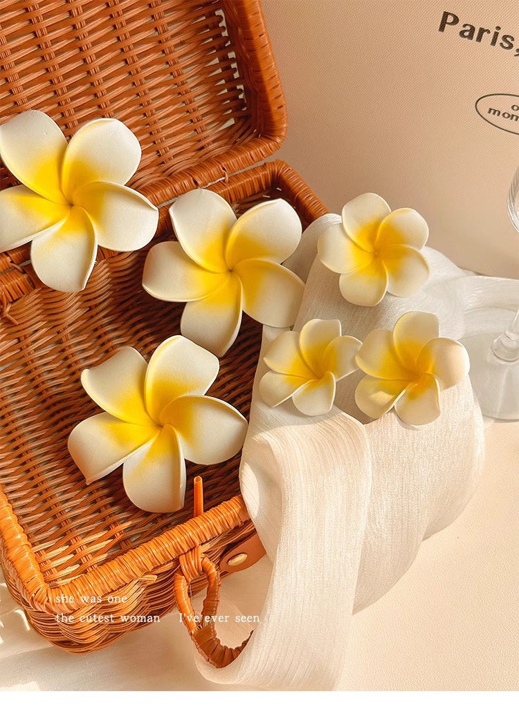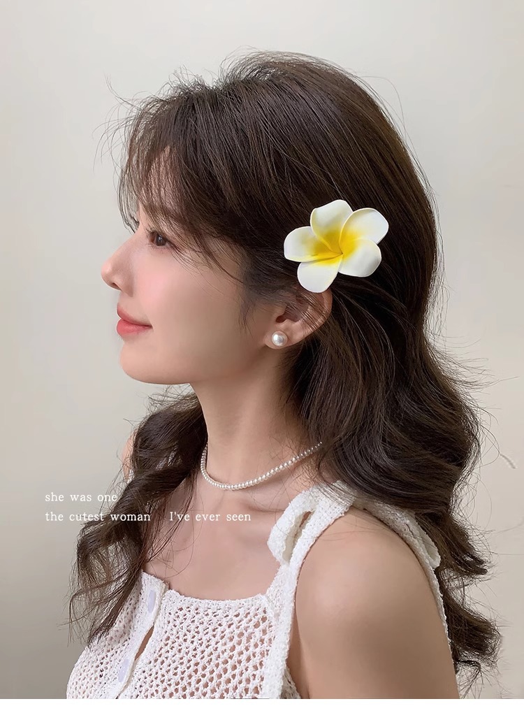 Huevo flor clip para el cabello de cabeza de mujer frente clip para el cabello de flores fotos junto al mar borde del cabello frangeo lateral clip para la boca