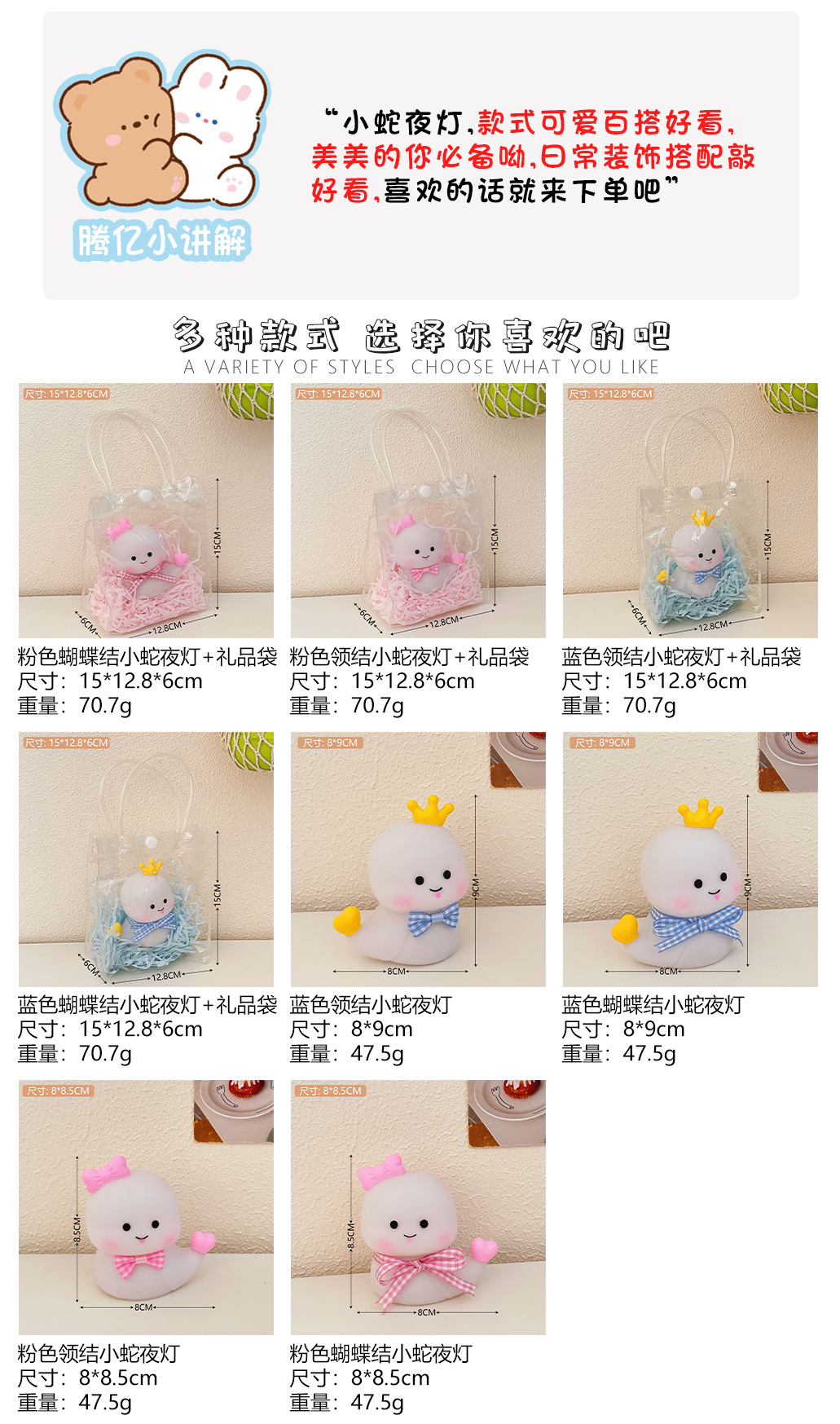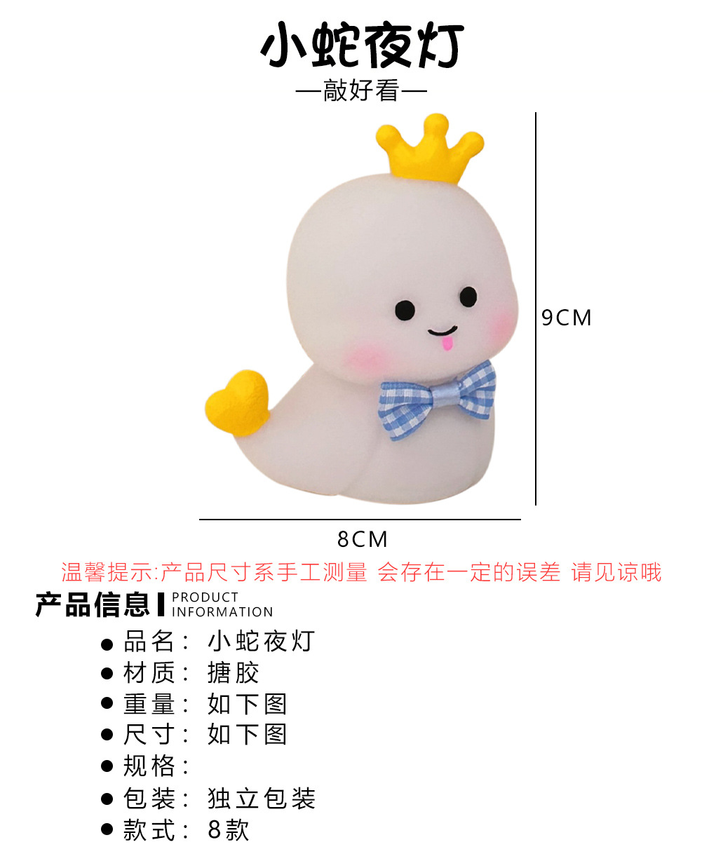Caricatura serpiente pequeña luz nocturna creativa cabeza de cama luz de atmósfera para niños regalos de Año Nuevo mercado nocturno puesto de luz nocturna al por mayor