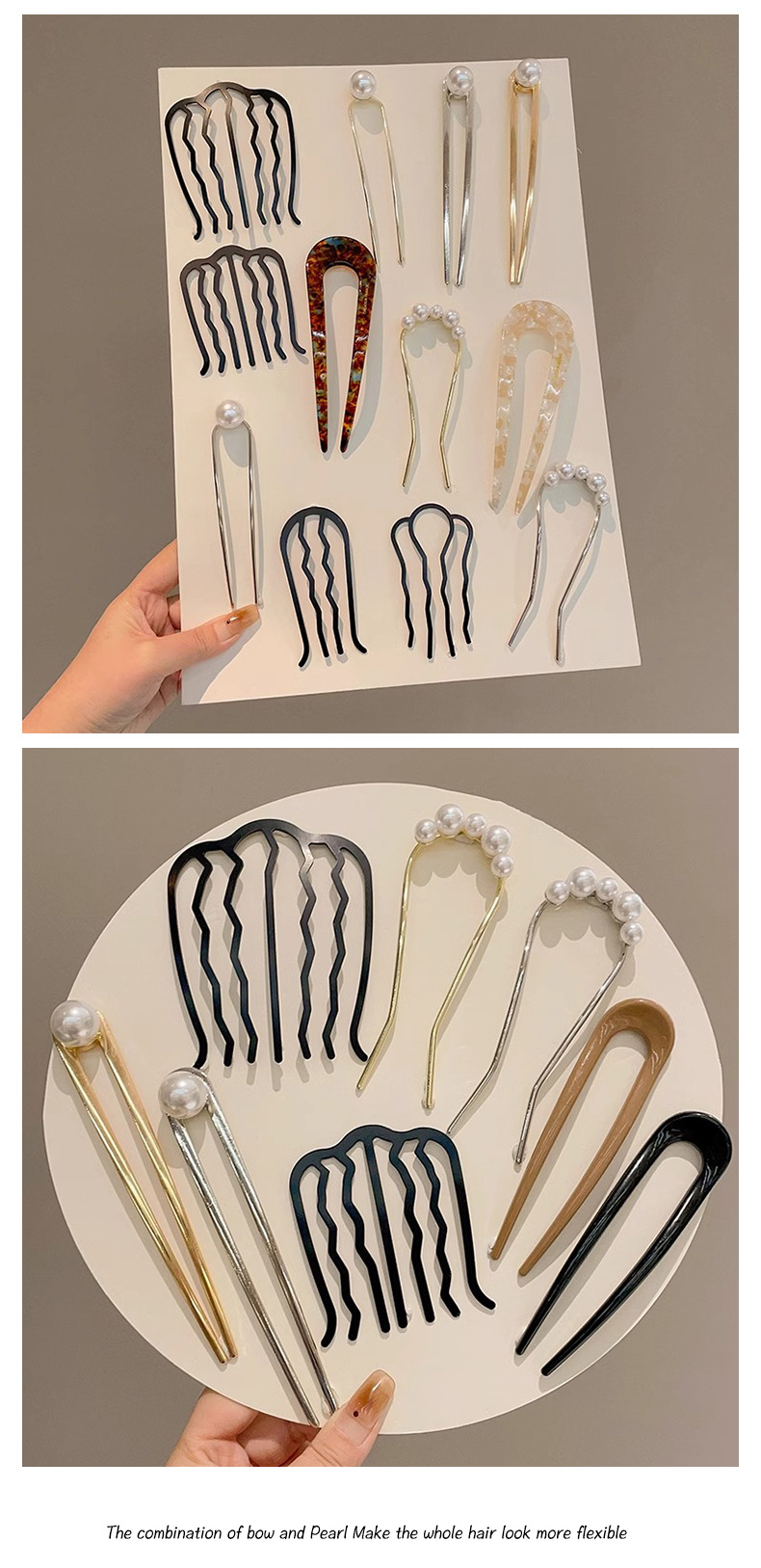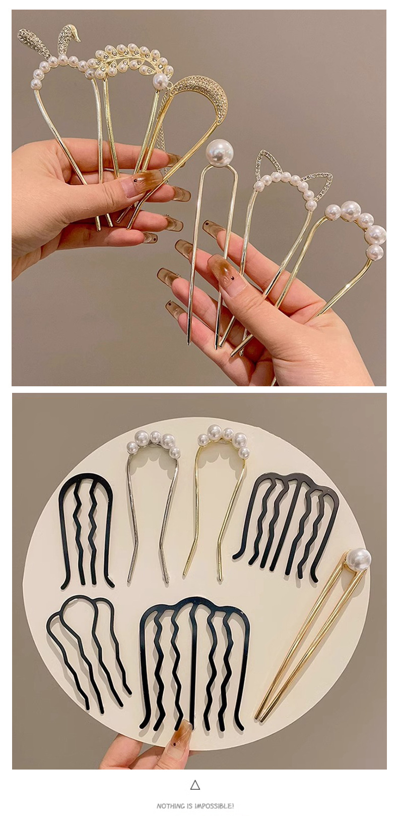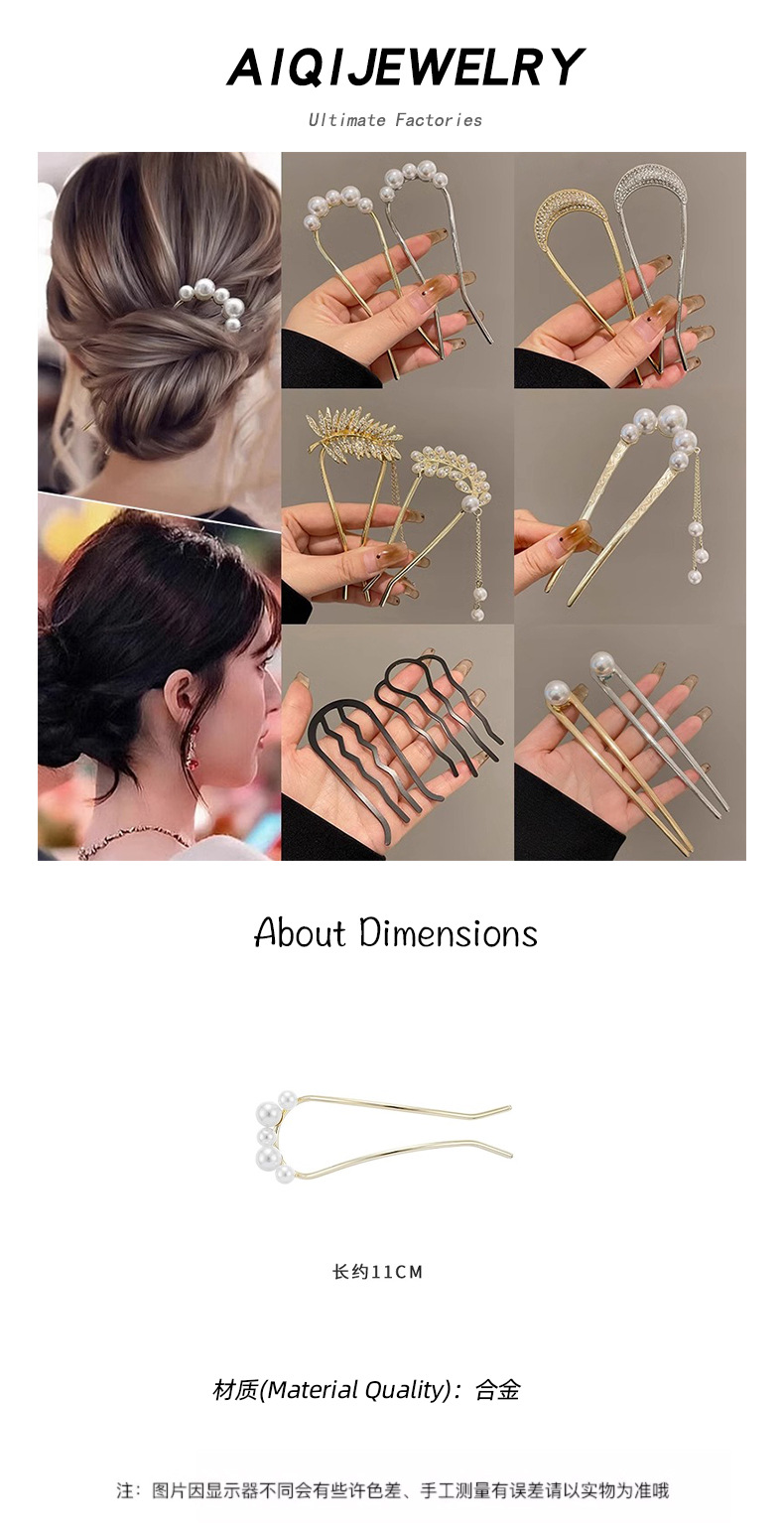 2025 nueva horquilla perla en forma de U, nueva horquilla de pelo de alto nivel femenino chino, horquilla, peine, dispositivo de fijación de cabello