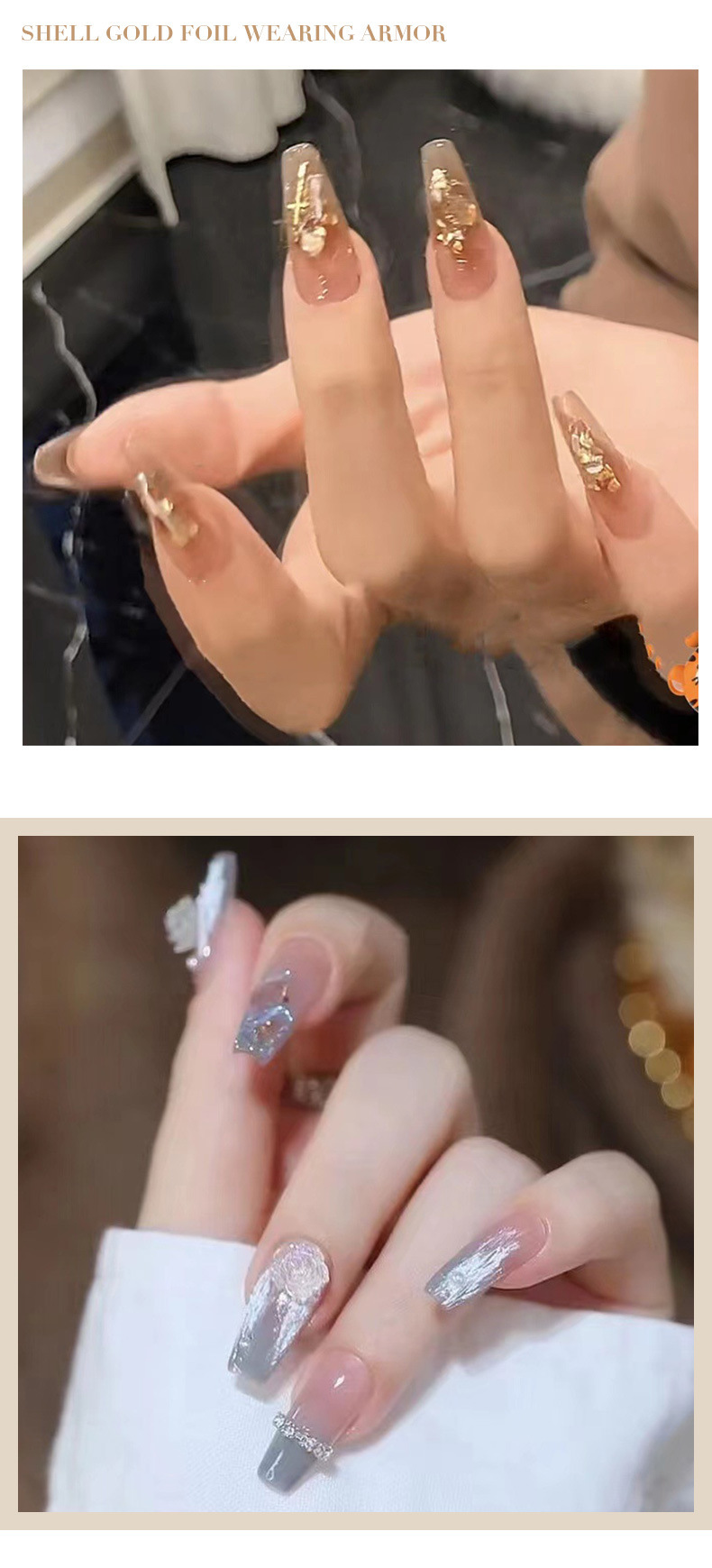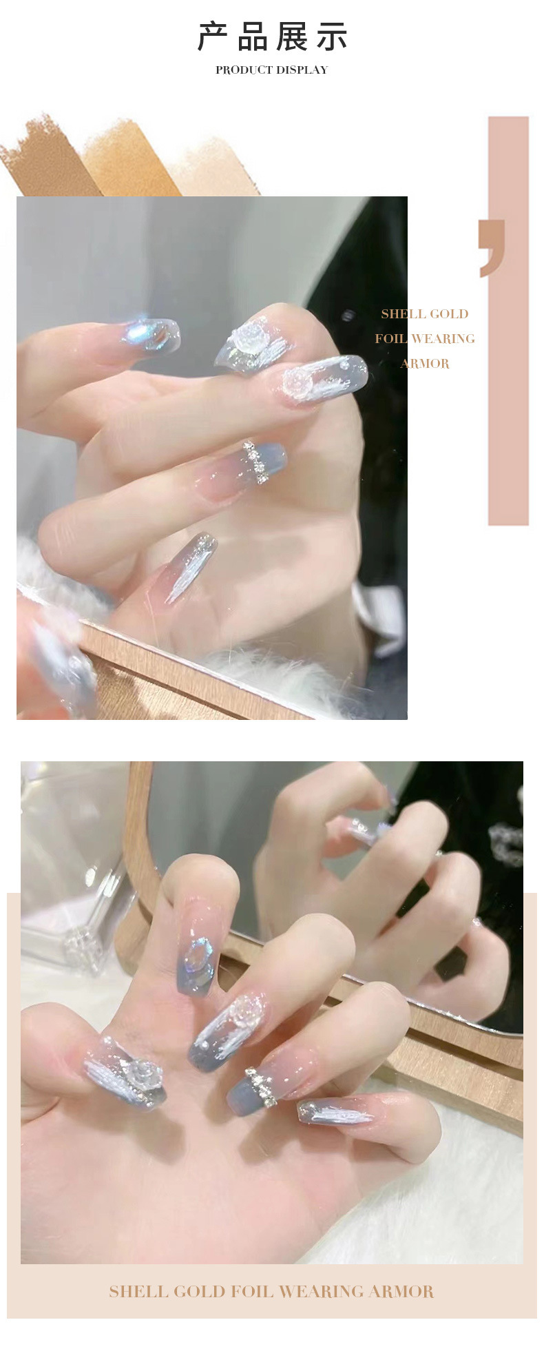 Nuevo desgaste hecho a mano esmalte de uñas al por mayor flash fragmentos de diamante hoja de oro desgaste uñas acabado europeo y americano largo brillante esmalte de uñas