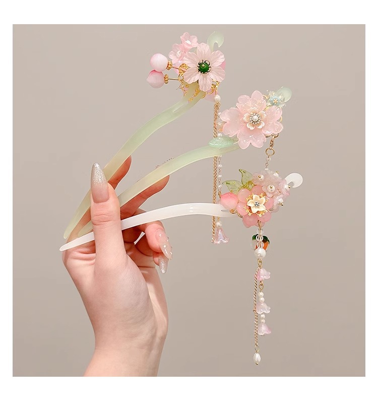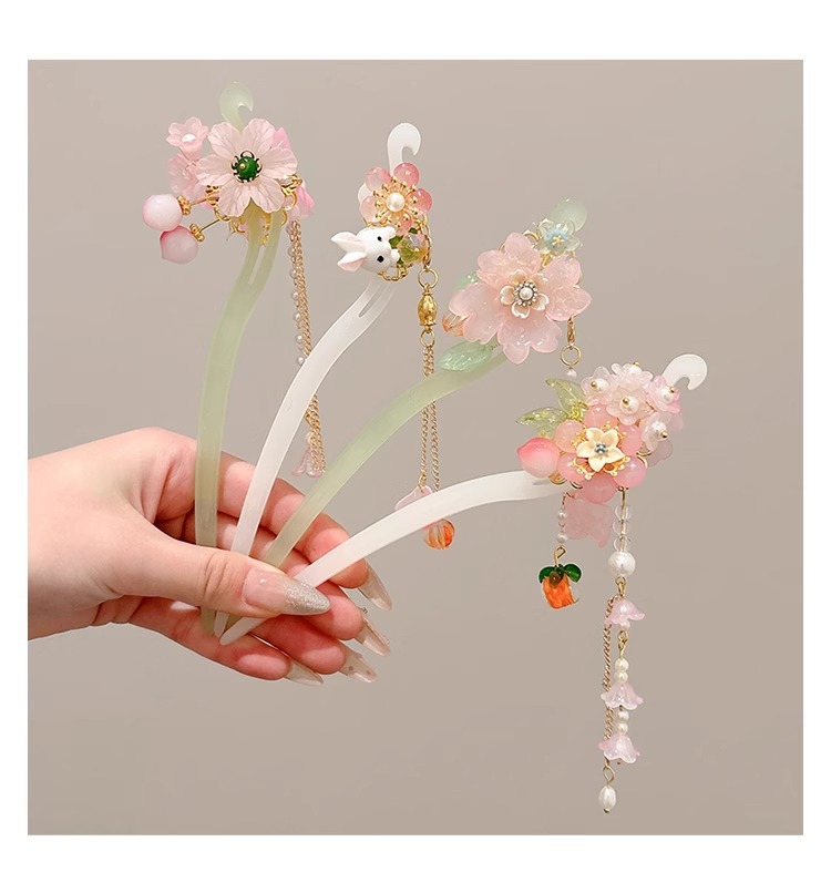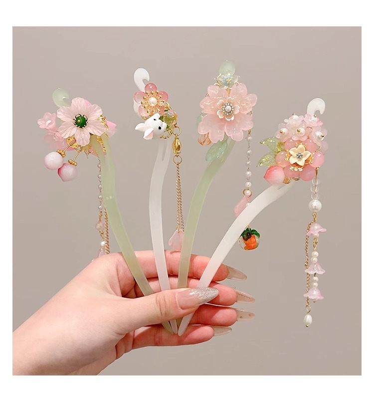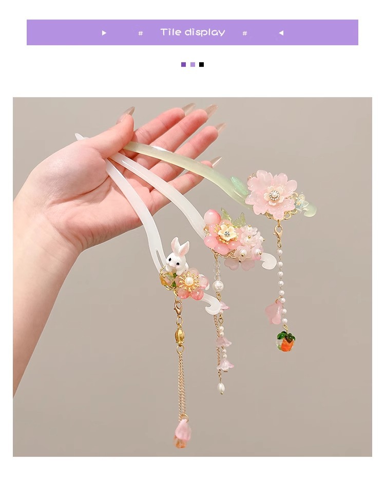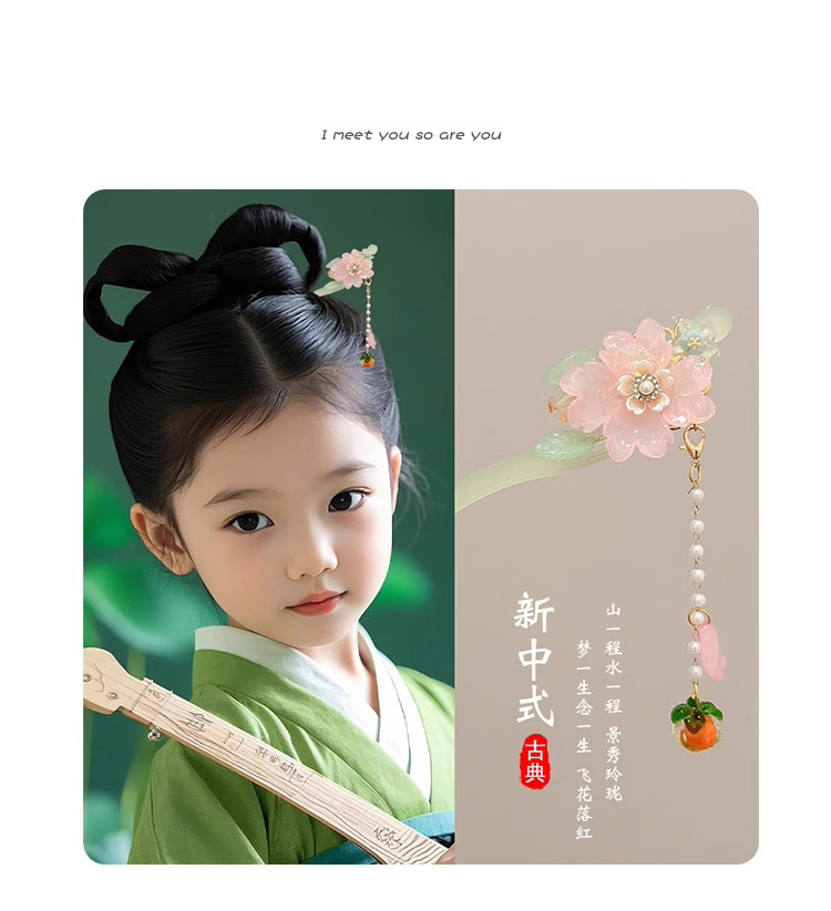 Niños antiguos vestidos han pinzas de cabello de niñas nuevos adornos de cabello chinos pinzas de cabello de niñas pasos de agitación pinzas de cabello