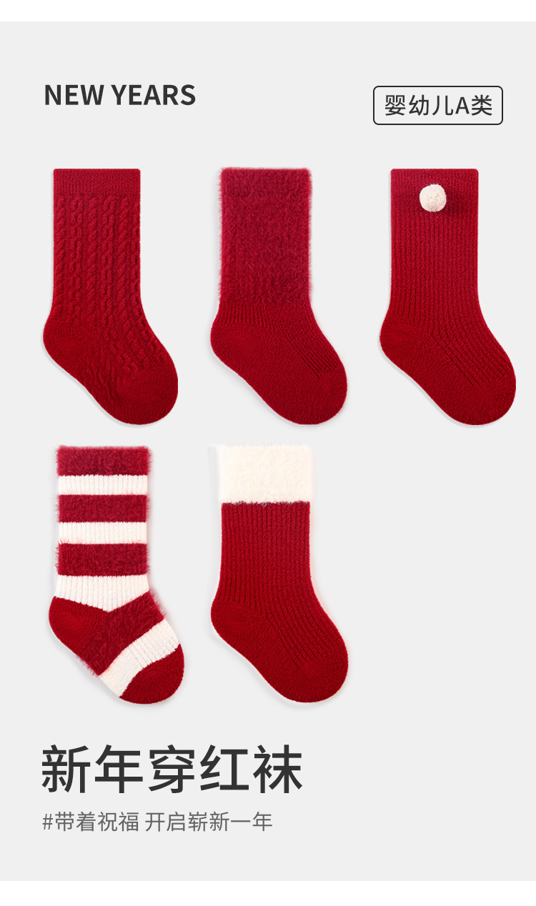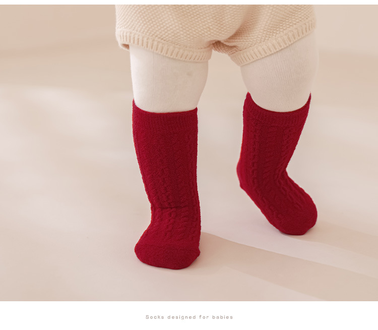 Calcetines para bebés otoño-invierno nuevos calcetines de calentamiento para niños rojos de Año Nuevo calcetines de algodón para bebés de un año
