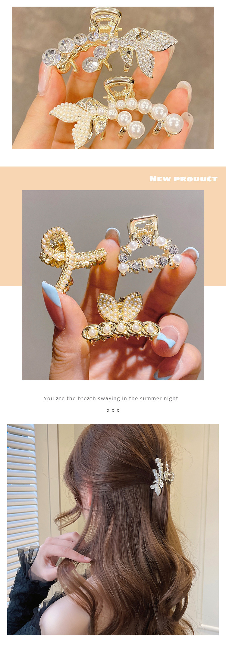 Perla cola de pescado horquilla de las mujeres de alto grado pequeño tamaño de la pinza de pelo temperamento espalda media corbata pelo tiburón clip tocado horquilla