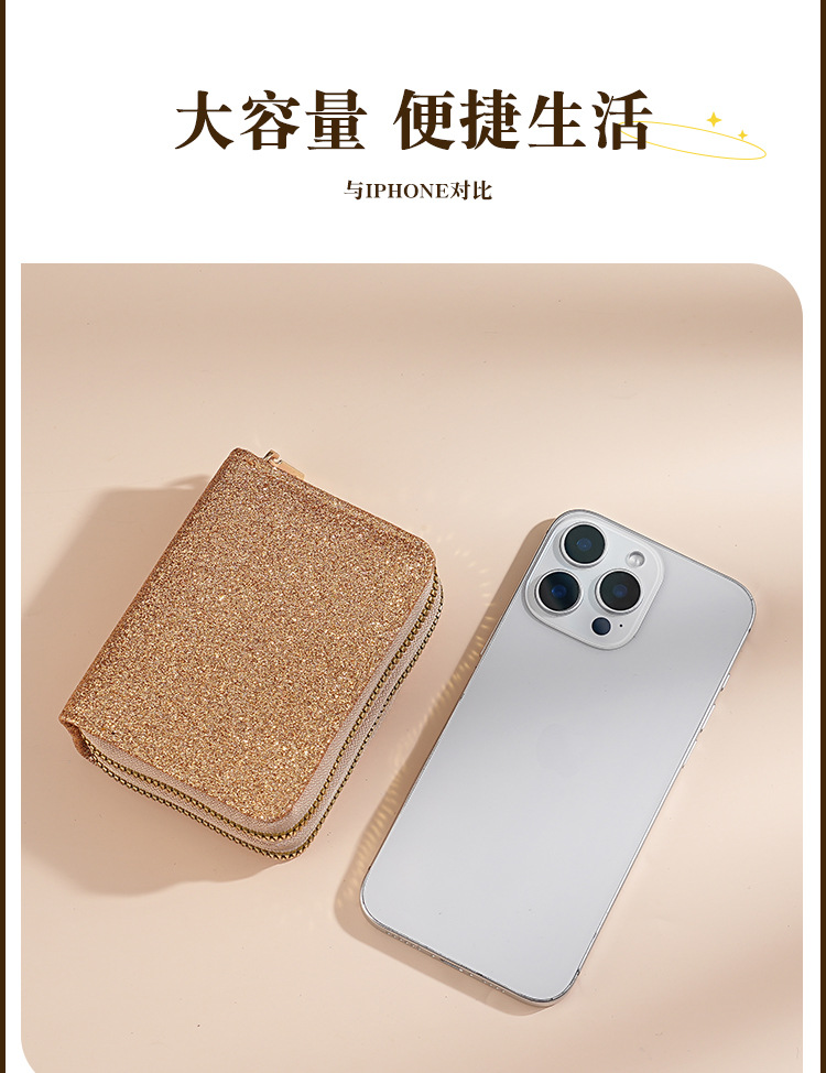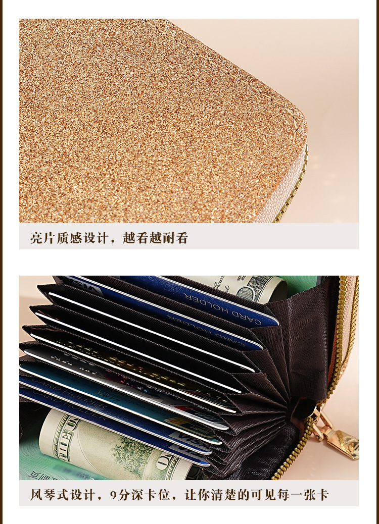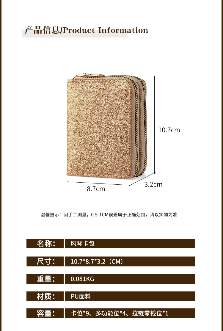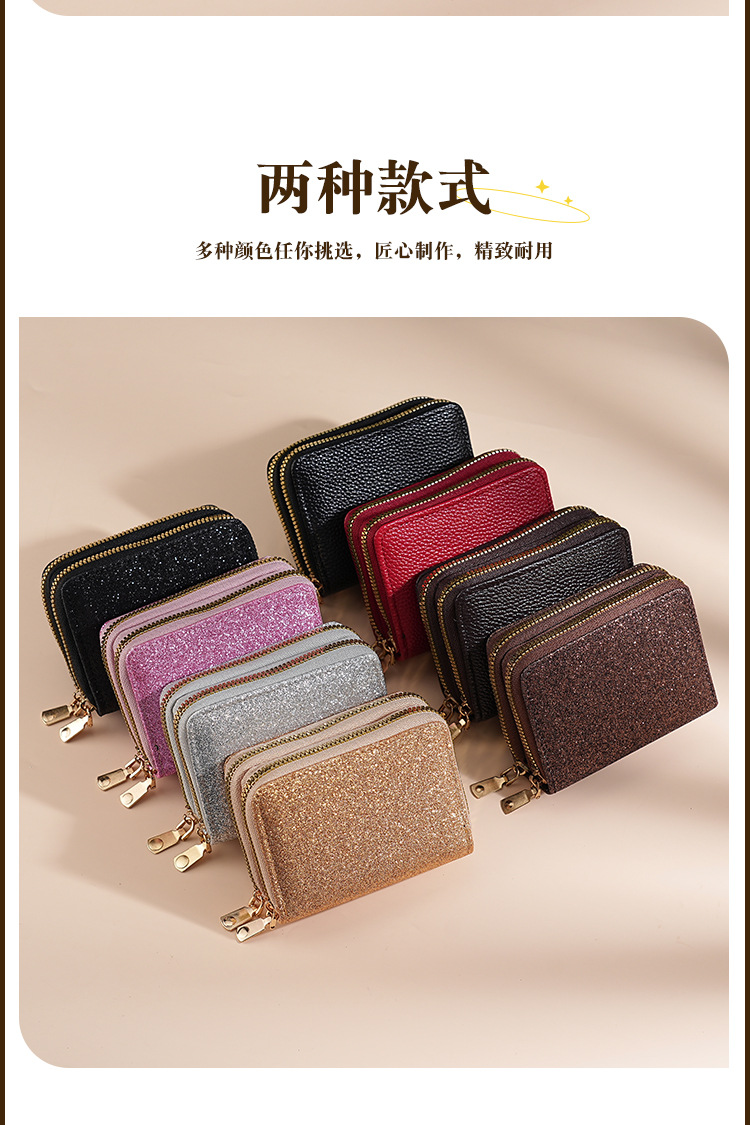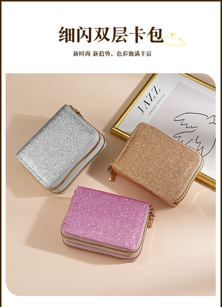 Bolso de tarjeta de órgano con doble cremallera para mujer transfronteriza Gypsophila Juego de tarjeta flash Bolso de tarjeta múltiple Bolso de mujer de moda