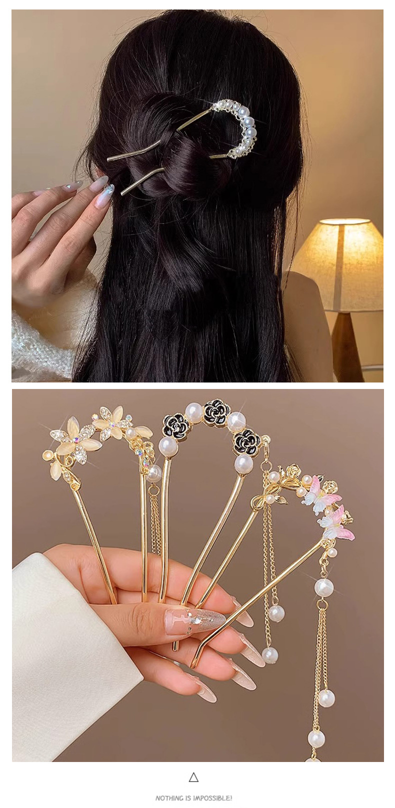 Horquilla en forma de U de alta calidad para mujer 2025 nuevo estilo tocado borla horquilla balanceándose en la parte posterior de la cabeza artefacto del cabello accesorios para el cabello