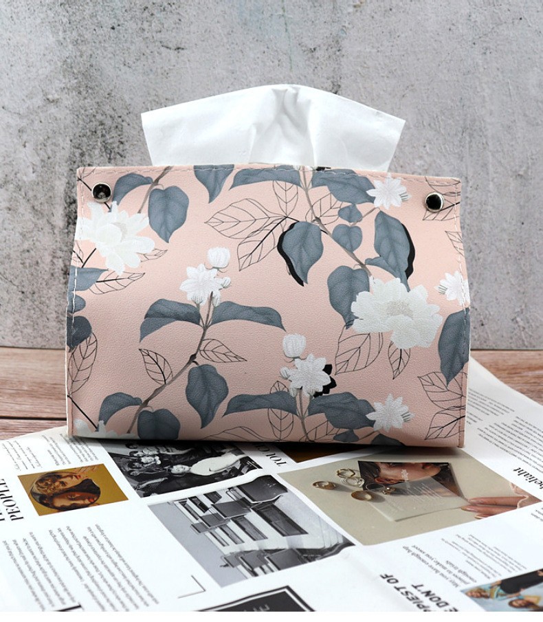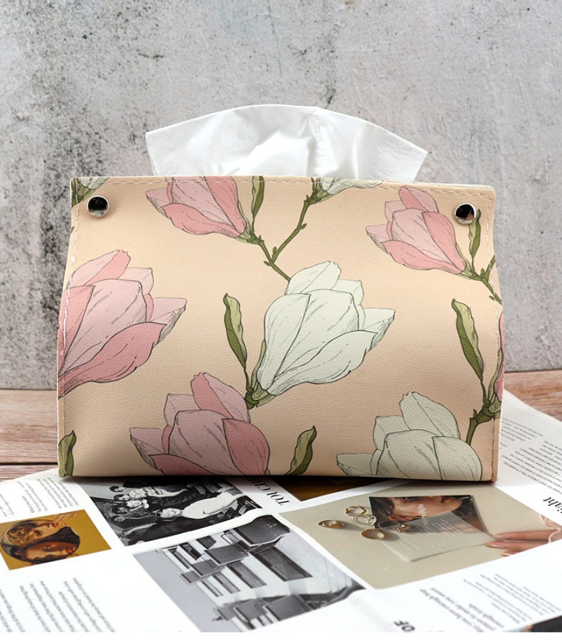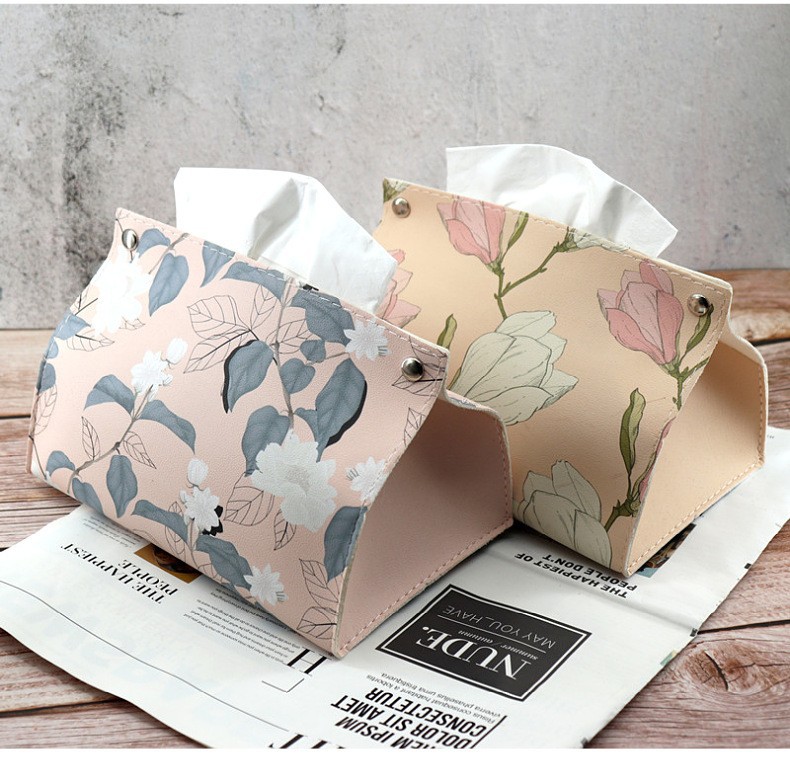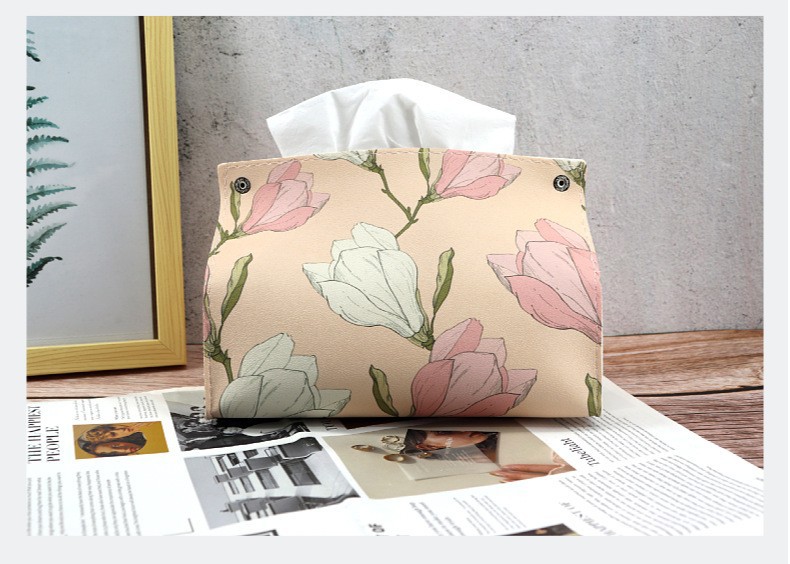 Caja de pañuelos de cuero con forma de flor para el hogar, baño, sala de estar, escritorio, hotel, casa de huéspedes, coche, portátil