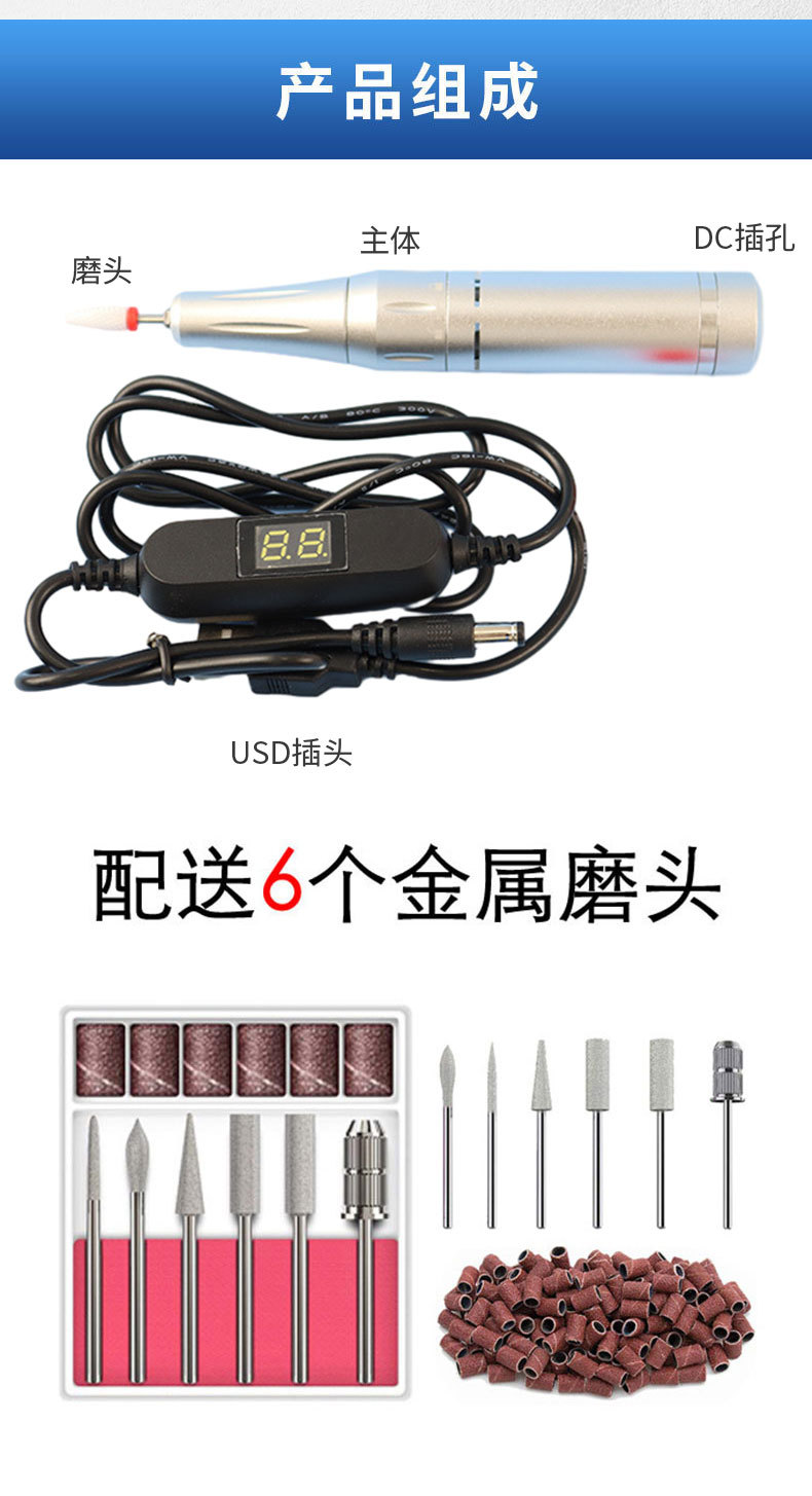 Máquina de pulido de uñas estilo pluma hogar pequeña máquina de molienda recargable portátil eliminación de piel muerta máquina de pulir de esmalte de uñas transfronteriza