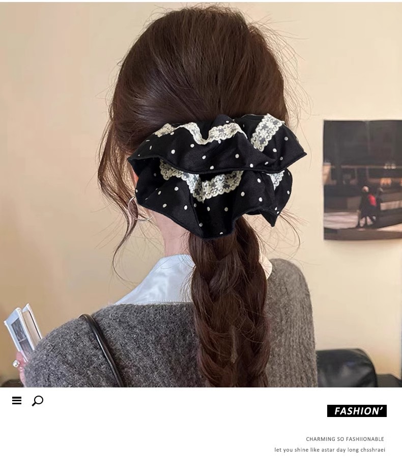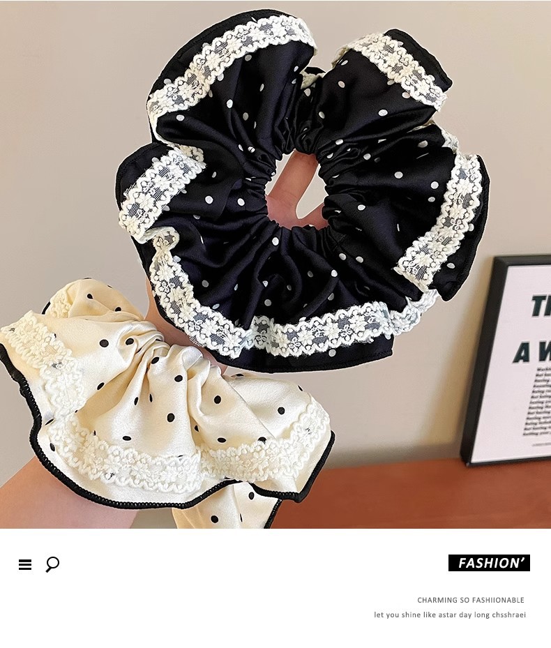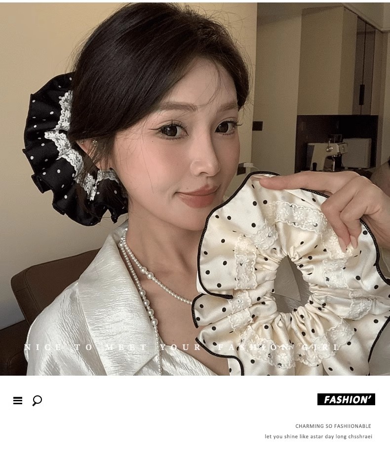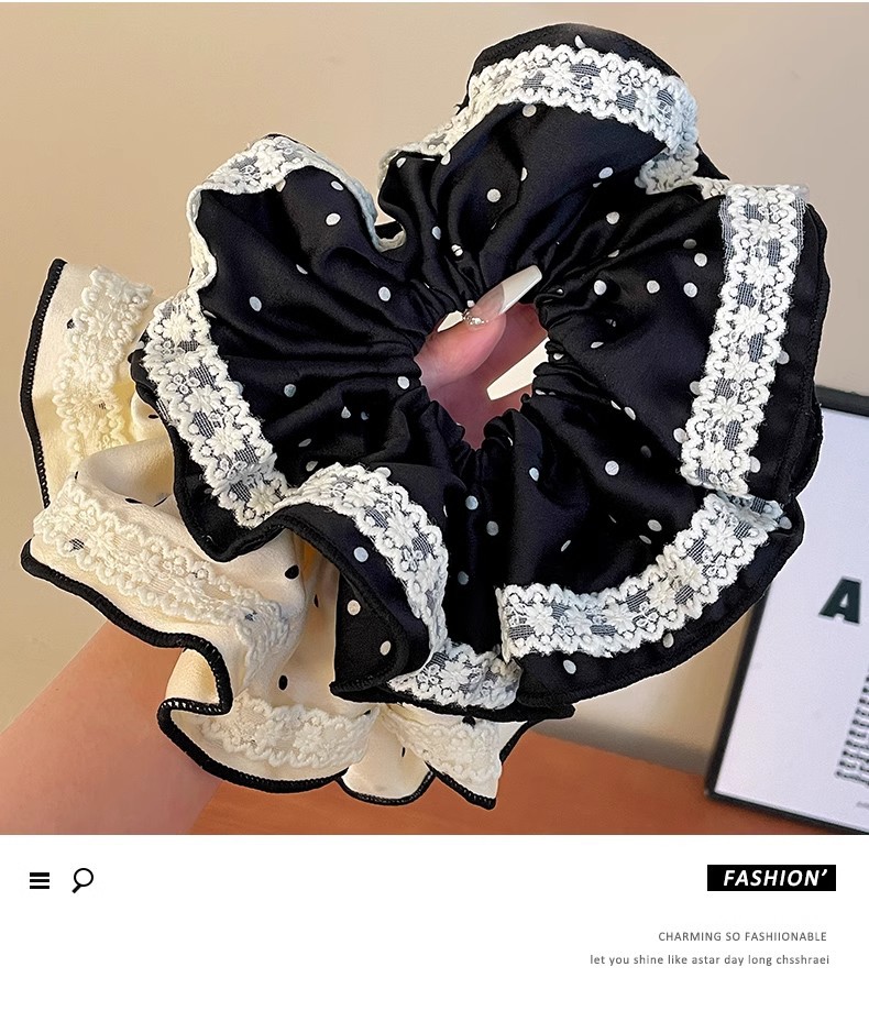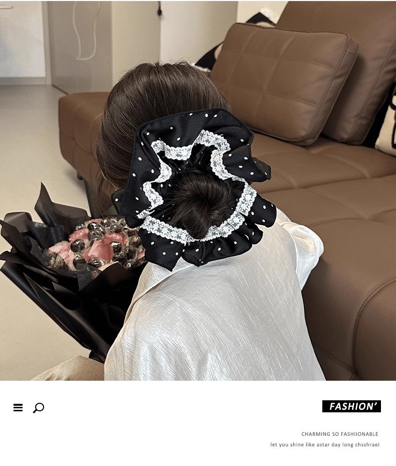 Punto de onda de anillo de cabello de intestino grueso para mujeres 2025 nuevo encaje de bola de encaje de tamaño súper alto sentido de caballo de cabello de cabello flores de cabeza
